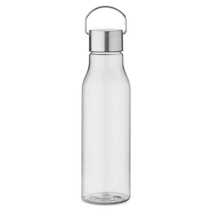 Butelka do picia z RPET, wolna od BPA, z zakrętką ze stali nierdzewnej z uchwytem. Szczelna. Pojemność: 600 ml.