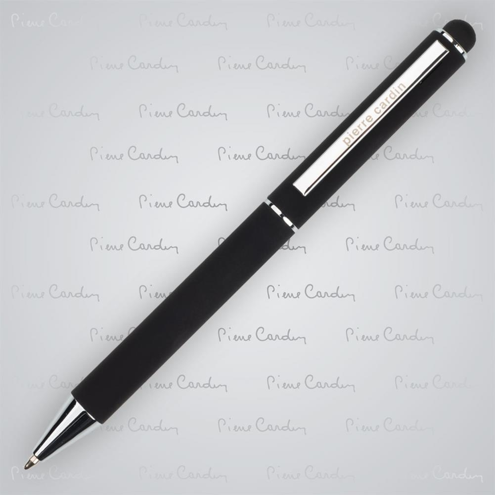 Luksusowy długopis aluminiowy z przyjemną w dotyku powierzchnią soft touch i srebrnymi detalami. Posiada wysokiej jakości niebieski wkład z końcówką 1 mm oraz funkcję touch pen. Zapakowany w eleganckie etui prezentowe z certyfikatem autentyczności Pierre Cardin.