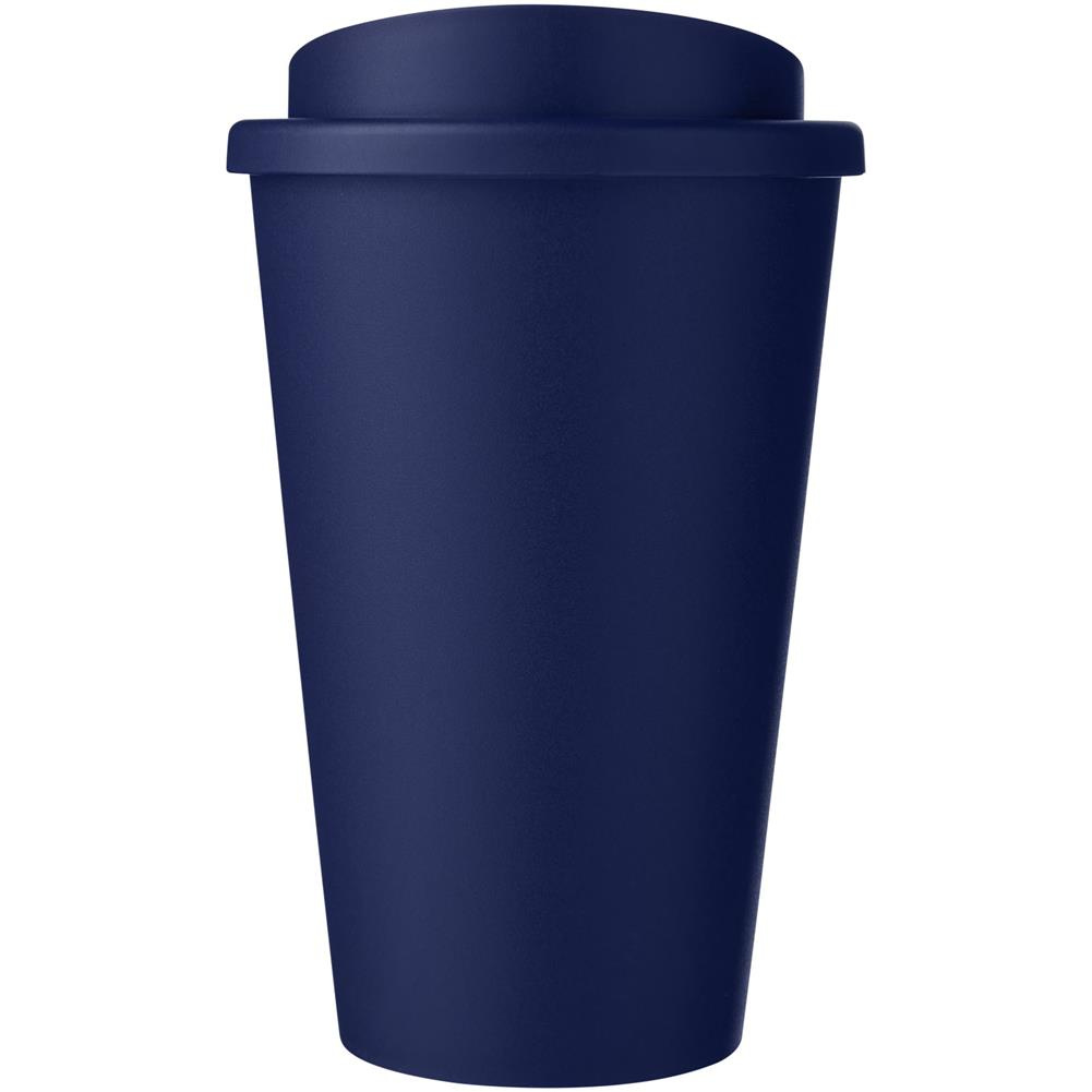 Dwuwarstwowy, termoizolowany kubek o pojemności 350 ml z bezpieczną zakręcaną pokrywą.