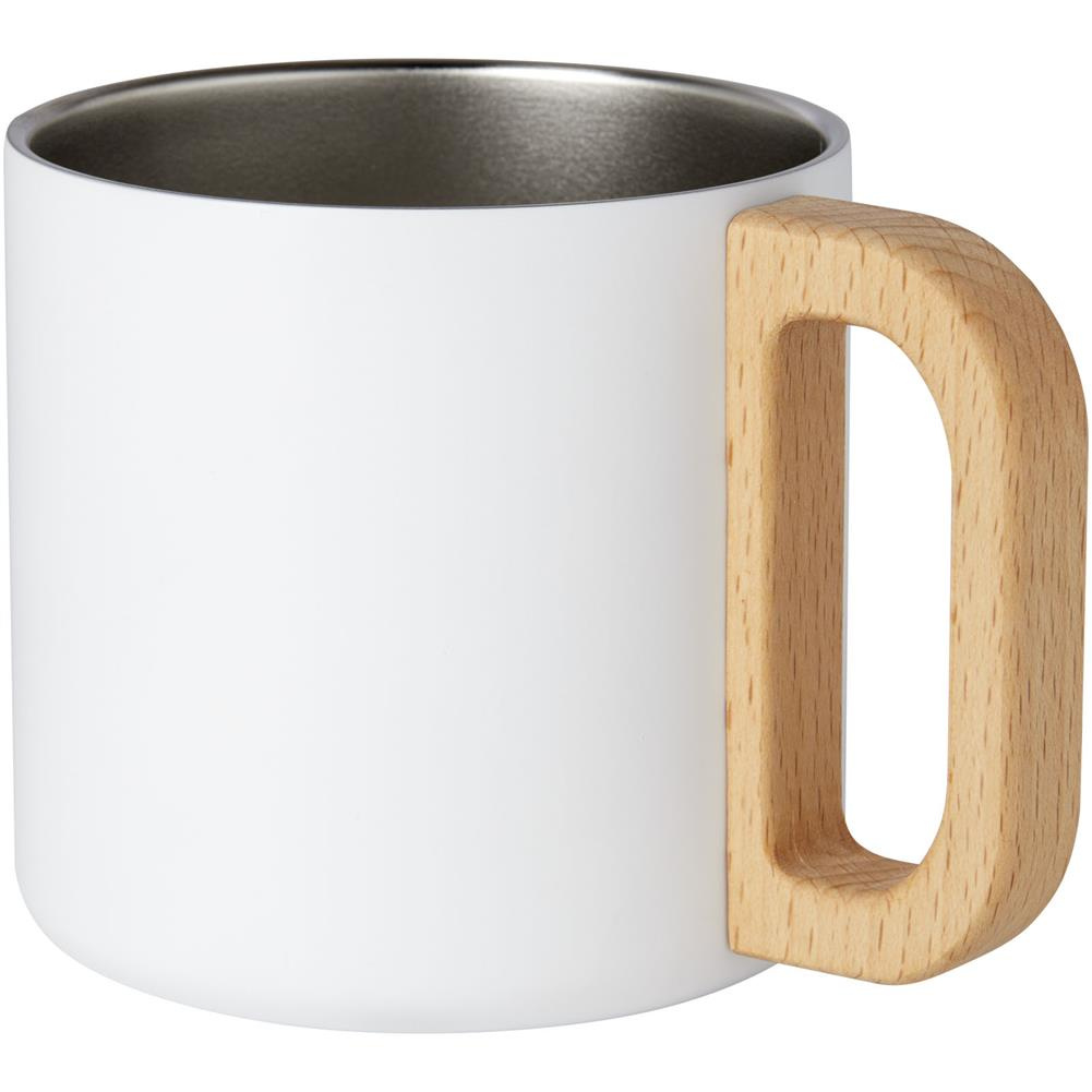 Kubek Bjorn wykonany jest ze stali nierdzewnej z recyklingu z certyfikatem RCS z uchwytem wykonanym z odpowiedzialnie pozyskiwanego drewna bukowego.