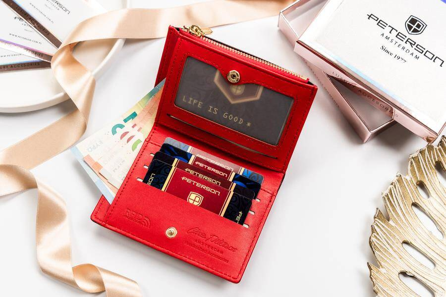 Mały portfel damski ze skóry ekologicznej — Peterson Portfel odszyty bardzo trwale z doskonałej jakości skóry ekologicznej.