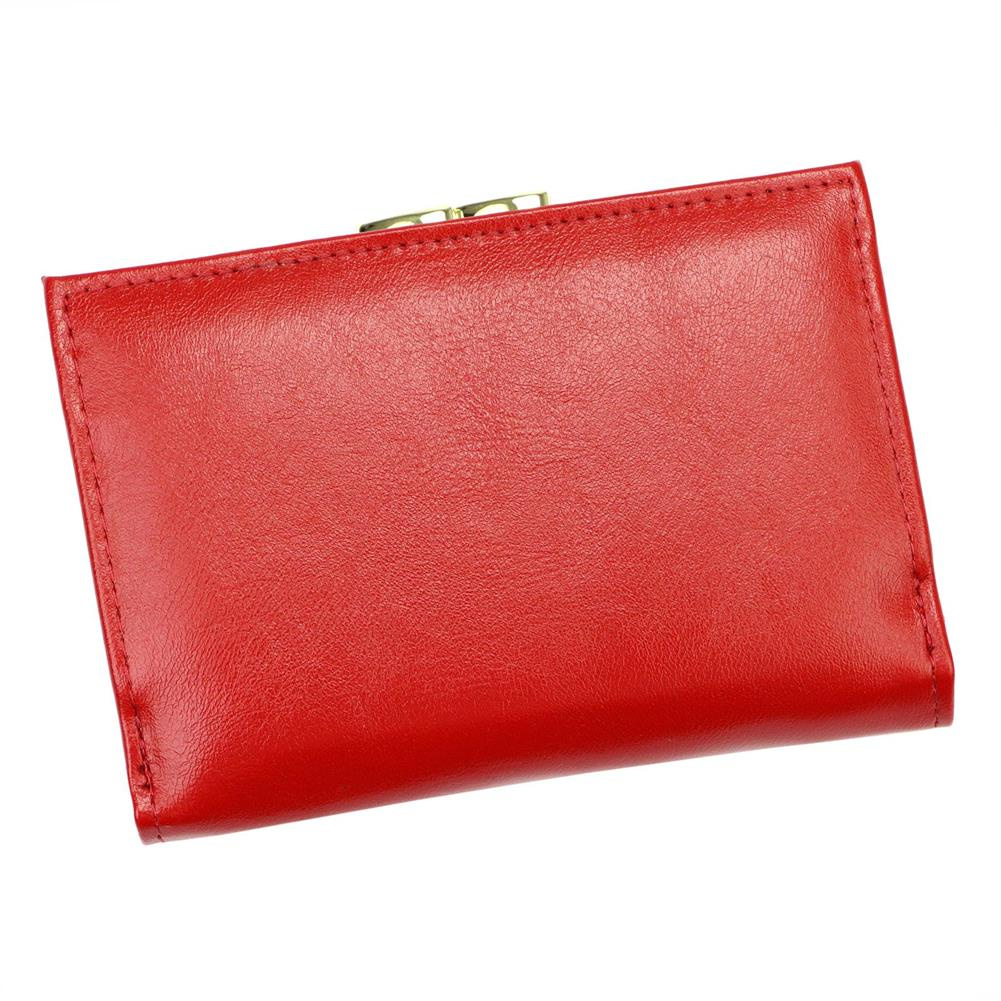 Nieduży portfel damski, wykonany z najwyższej jakości naturalnej, włoskiej skóry licowej, częściowo wytłoczonej w rysunek skóry krokodyla i lakierowanej.