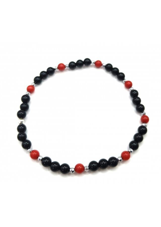 Kamień: Turmalin + Koral i Hematyt Rozmiar kamienia: 4/2mm Długość: 17,5 cm Zapięcie: gumka Bransoletka może być wykonana na zapięciu- prosimy o informację w uwagach do zamówienia