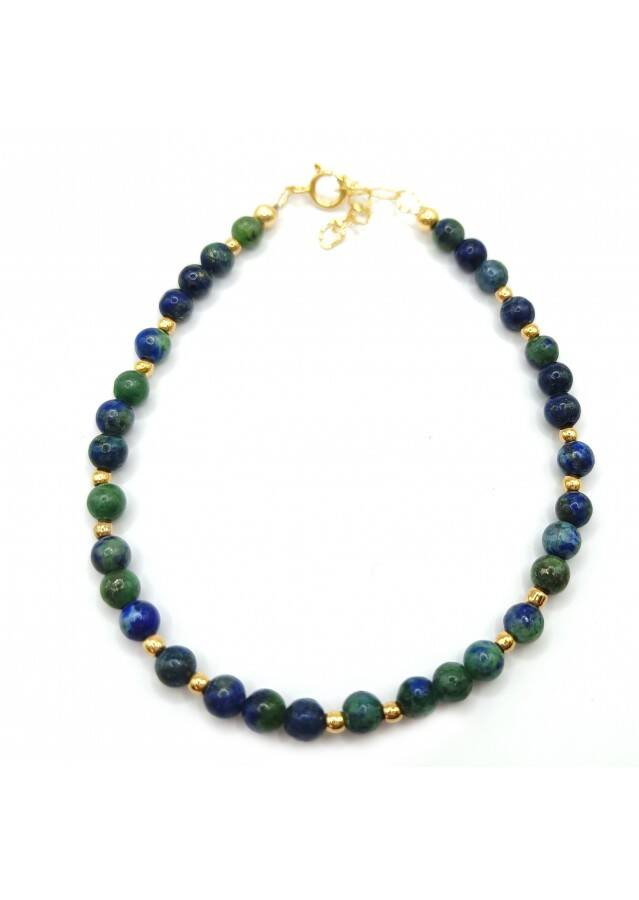 Kamień: Chryzokola i Hematyt Rozmiar kamienia: 4/2mm Długość: 17,5 cm Zapięcie: federing Bransoletka może być wykonana na gumce- prosimy o informację w uwagach do zamówienia Biżuteria