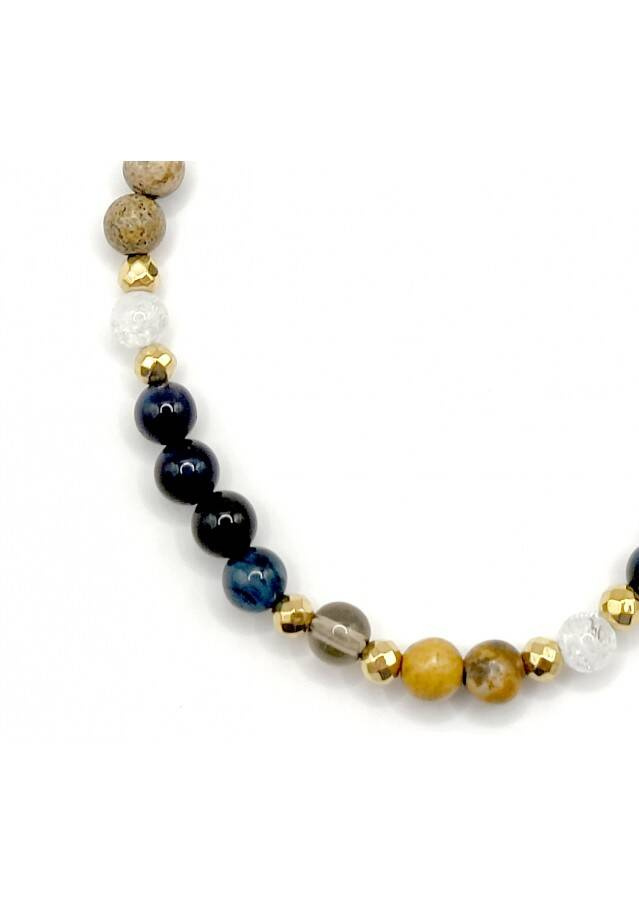 Bransoletka wykonana ze srebra próby 925, pozłacanego 24 karatowym złotem Kamień: Noc kairu + Kwarc + Jaspis i Hematyt Rozmiar kamienia: 4/2mm Długość: 17,5 cm  Zapięcie: federing Bransoletka może być wykonana na gumce- prosimy o informację w uwagach do zamówienia Biżuteria ręcznie wykonana, produkt Polski.