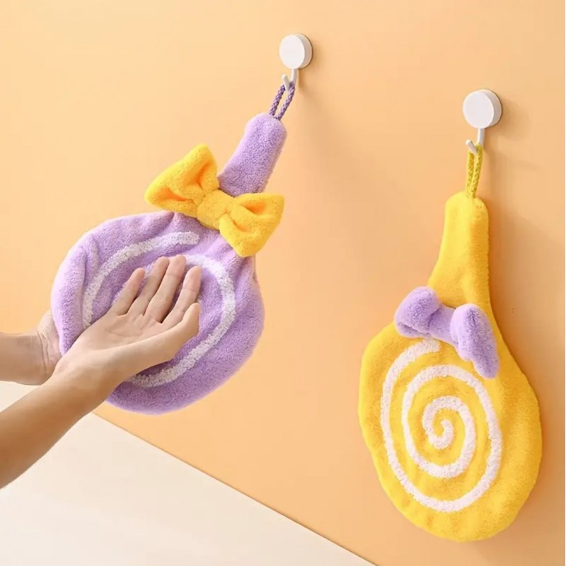 Szybkoschnący ręcznik do rąk na sznurku - wzór lizak z kokardą Uroczy i świetnie wchłaniający wodę ręcznik do rąk Pochłania 20% więcej wody, niż zwykły ręcznik. Posiada praktyczną zawieszkę, czas wchłaniania: 5 - 10 sekund  Wymiary: 30 cm x 20 cm    Materiał: Mikrofibra