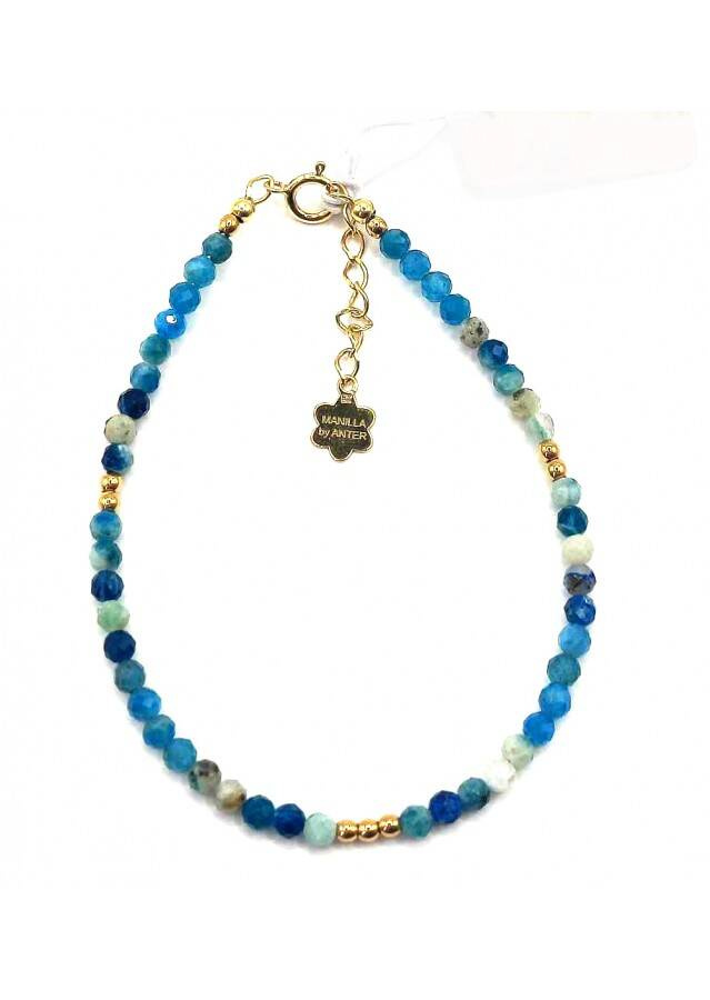 Bransoletka wykonana ze srebra próby 925, pozłacanego 24 karatowym złotem Kamień: K2+ Apatyt i Hematyt Rozmiar kamienia: 3/2mm Długość: 17,5 cm  Zapięcie: federing Bransoletka może być wykonana na gumce- prosimy o informację w uwagach do zamówienia Biżuteria ręcznie wykonana, produkt Polski.