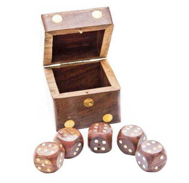 Małe drewniane kości do gry w pudełku – G150AZ Małe drewniane kości do gry to przyjemna alternatywa dla plastikowych kostek. Kości: ·5 kości do gry ·Wykonane z drewna Pudełko: ·Wykonane z drewna ·Wymiary pudełka: 6 x 6 cm