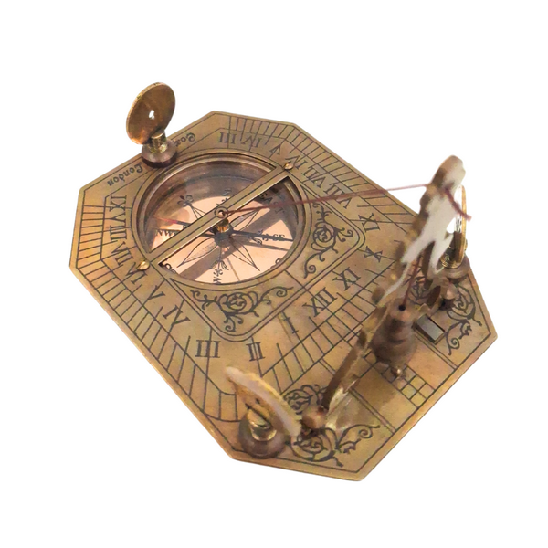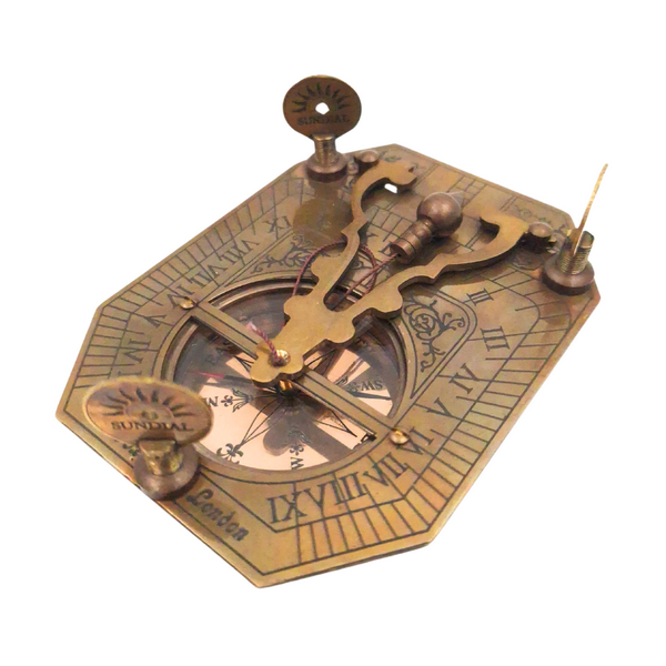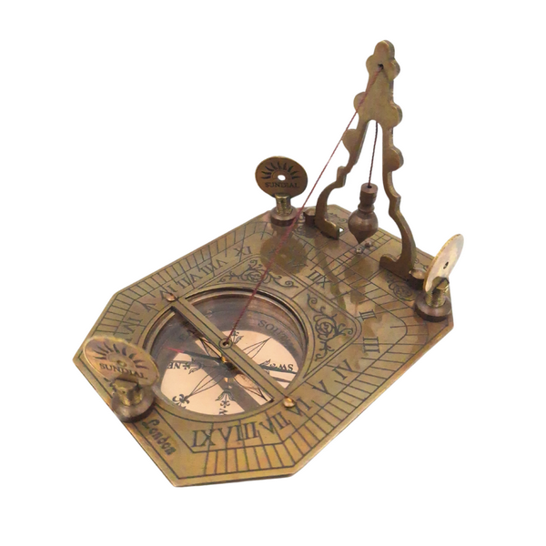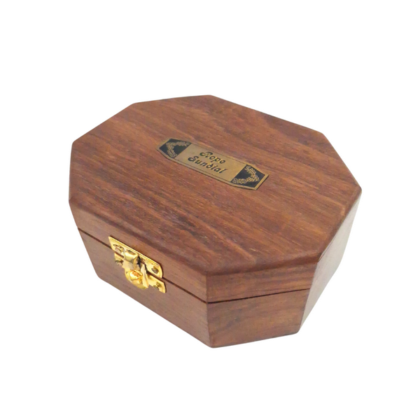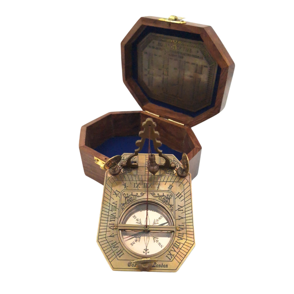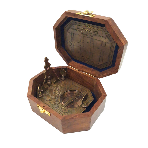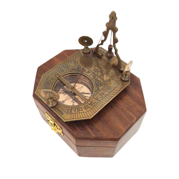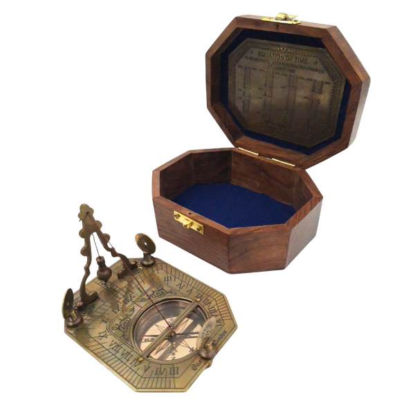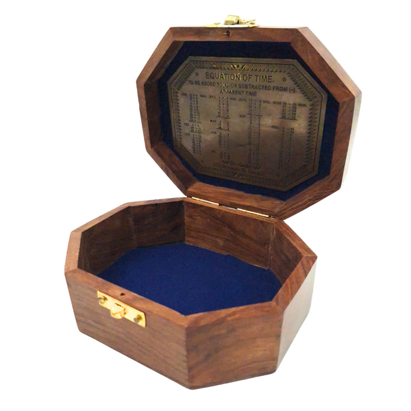 Kompas z zegarem słonecznym w ośmiokątnym pudełku drewnianym - CSDF337