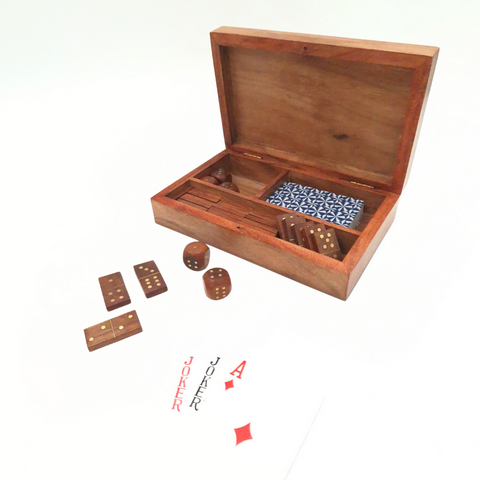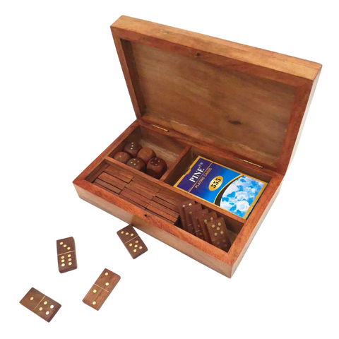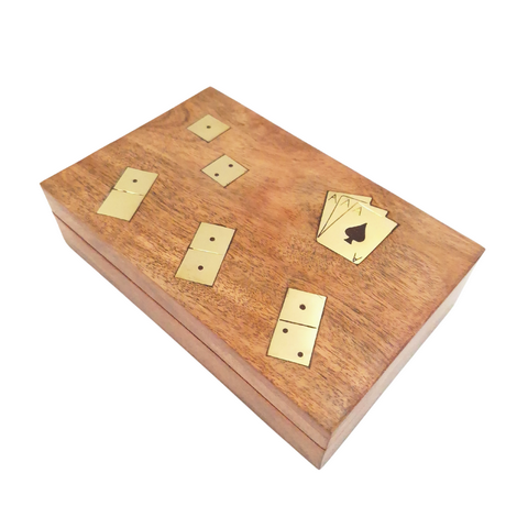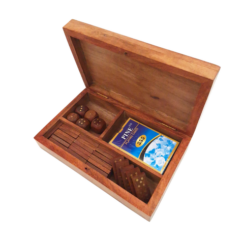 Zestaw gier - karty, domino, kości w pudełku drewnianym - DNU-011