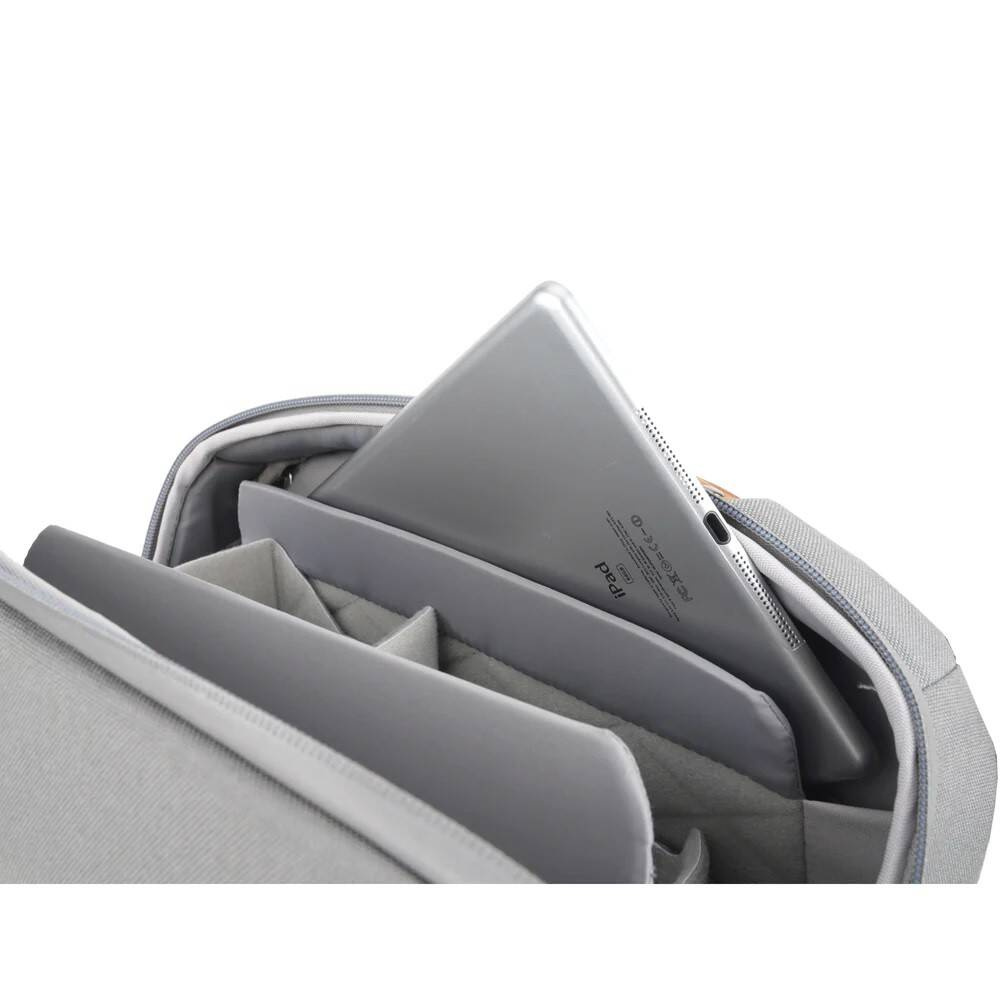 Wnętrze tej torby o 8-litrowej pojemności charakteryzuje się konfigurowalnymi przegrodami i szeregiem dodatkowych kieszeni. Umożliwia to idealną organizację zawartości. Niezależnie od tego czy torba zawierać będzie aparat z dodatkowymi obiektywami, lampą, statywami, drona i 12” tablet, to zawsze dobierzesz optymalny ich układ i ułożenie.