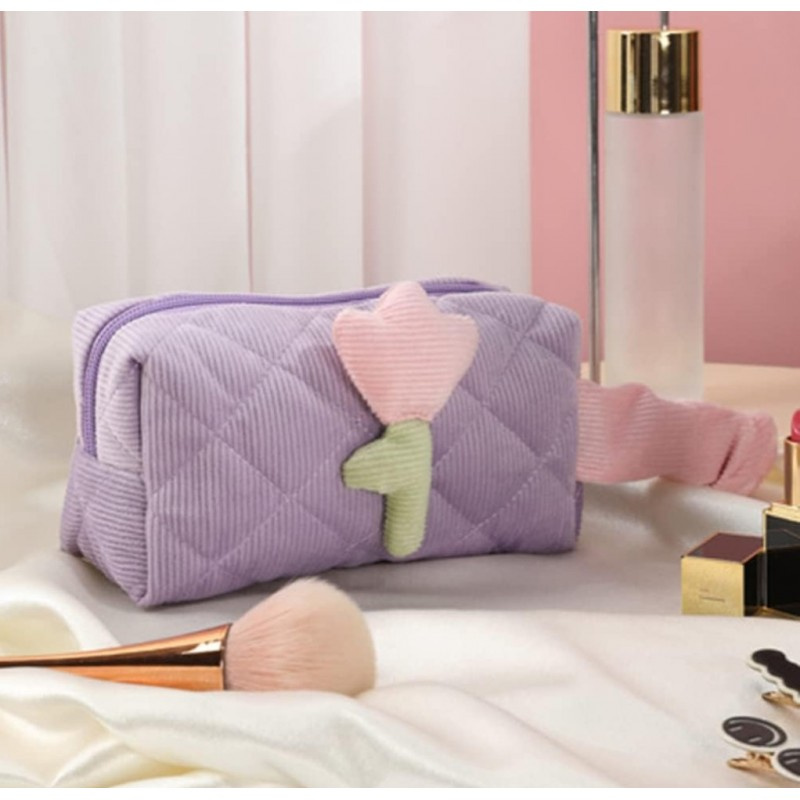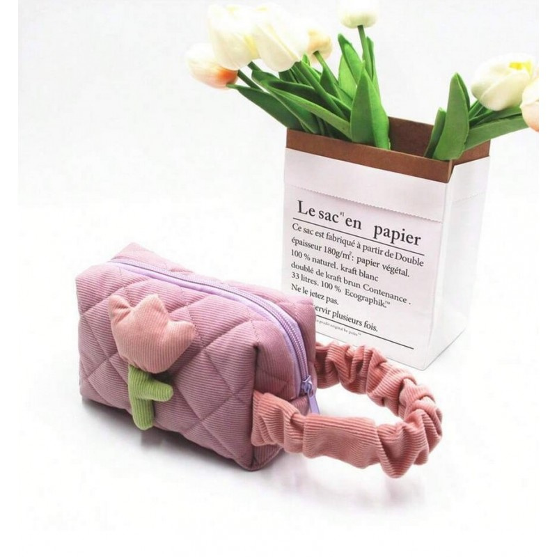 Organizer na kosmetyki / kosmetyczka podróżna Modny dodatek na podróż - rozkładana kosmetyczka z motywem tulipana! Wykonana z miękkiego, pikowanego materiału typu sztruks. Bardzo praktyczna i uniwersalna. Kosmetyczka w sam raz na dłuższe podróże czy wyjazdy - jest bardzo poręczna i pojemna, pomieści wszystkie niezbędne rzeczy. Posiada jedną komorę zasuwaną na zamek. Kosmetyczka jest bardzo pojemna. Wymiary:  20 x 12,5 x 8,5 cm (+ 9,5 cm uchwyt)
