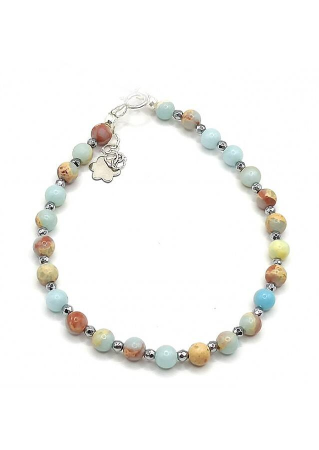Bransoletka wykonana ze srebra próby 925, rodowanego Kamień: Jaspis i Hematyt Rozmiar kamienia: 4/2mm Długość: 17,5 cm  Zapięcie: federing Bransoletka może być wykonana na gumce- prosimy o informację w uwagach do zamówienia Biżuteria ręcznie wykonana, produkt Polski.