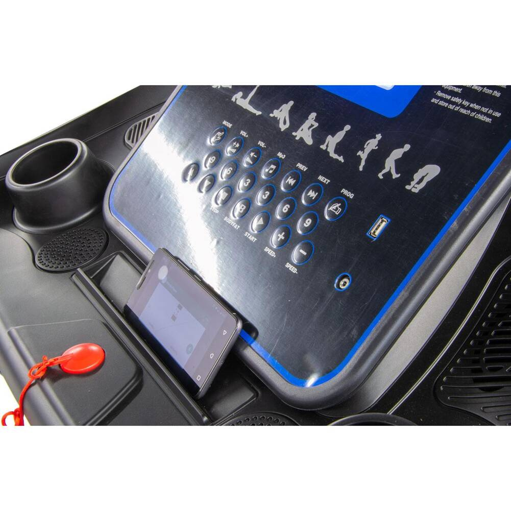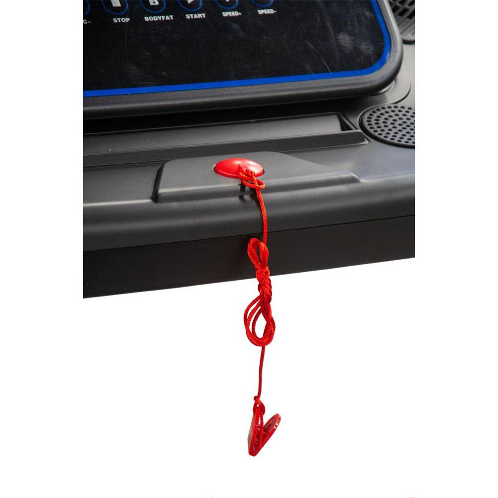 - antypoślizgowy pas biegowy i klucz bezpieczeństwa zadba o bezpieczeństwo ćwiczącego podczas biegu, marszu czy szybkim chodzie