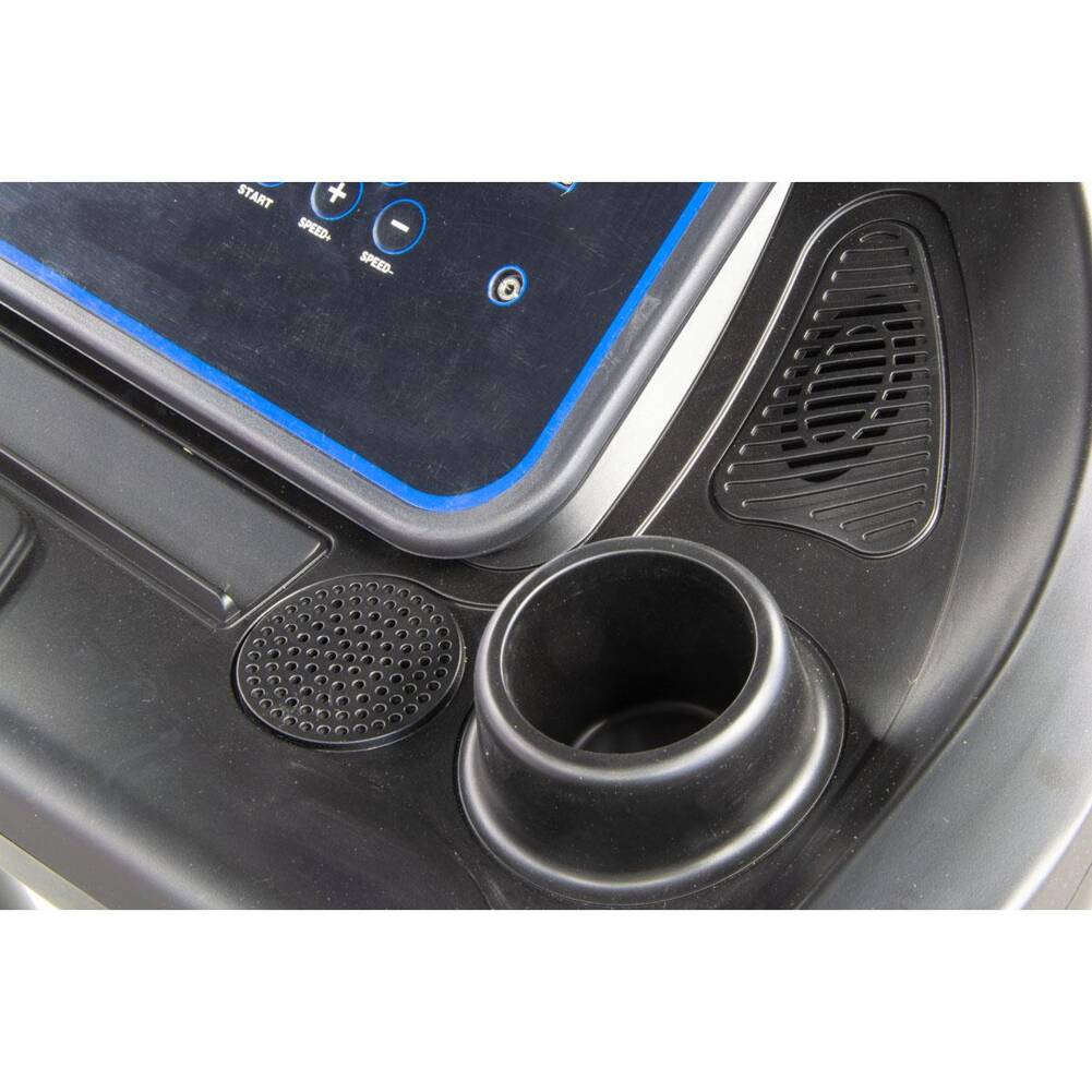 Panel sterujący pozwoli Ci na wybór programu, przyspieszyć lub zwolnić pracę taśmy, włączyć i wyłączyć urządzenie, zmienić kąt nachylenia taśmy, a 25 calowy ekran LCD z wielofunkcyjnym licznikiem, wskaże Ci m.in. puls, czas, prędkość, dystans i kalorie. Dodatkowo w rączkach umieszczono specjalne czujniki pulsu, które pozwolą kontrolować przez cały trening pracę Twojego serca oraz przyciski do zmiany kąta nachylenia lub zwiększania i zmniejszania prędkości.
