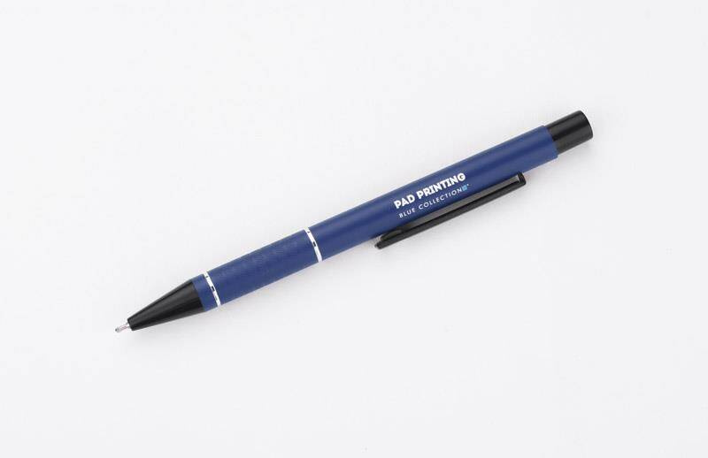 Korpus długopisu został ozdobiony dwoma srebrnymi ringami oraz paskami o delikatnie chropowatej strukturze, dodając mu przyjemnie sensorycznego wymiaru.