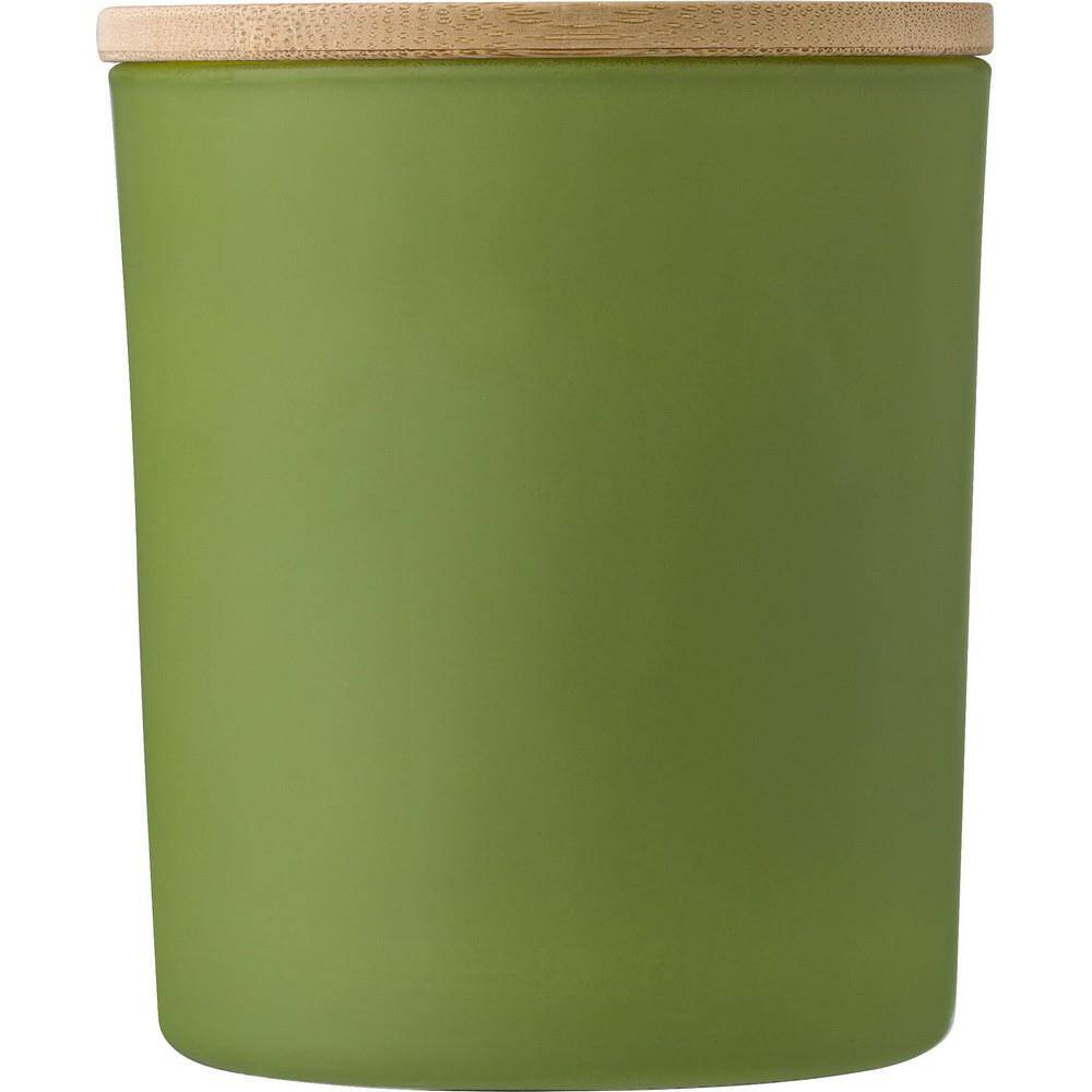 Świeczka zapachowa w szklanym słoiczku z bambusowym wieczkiem.