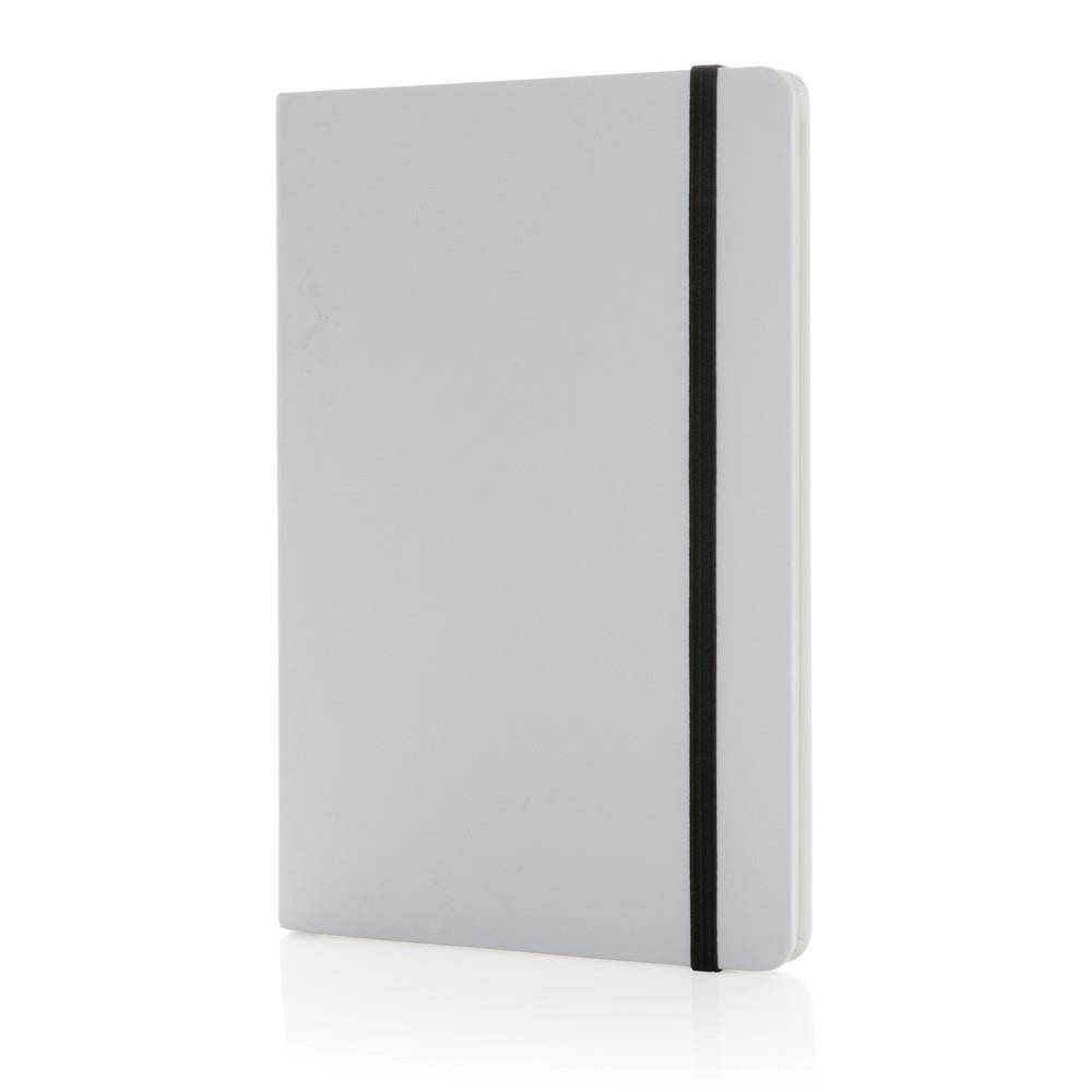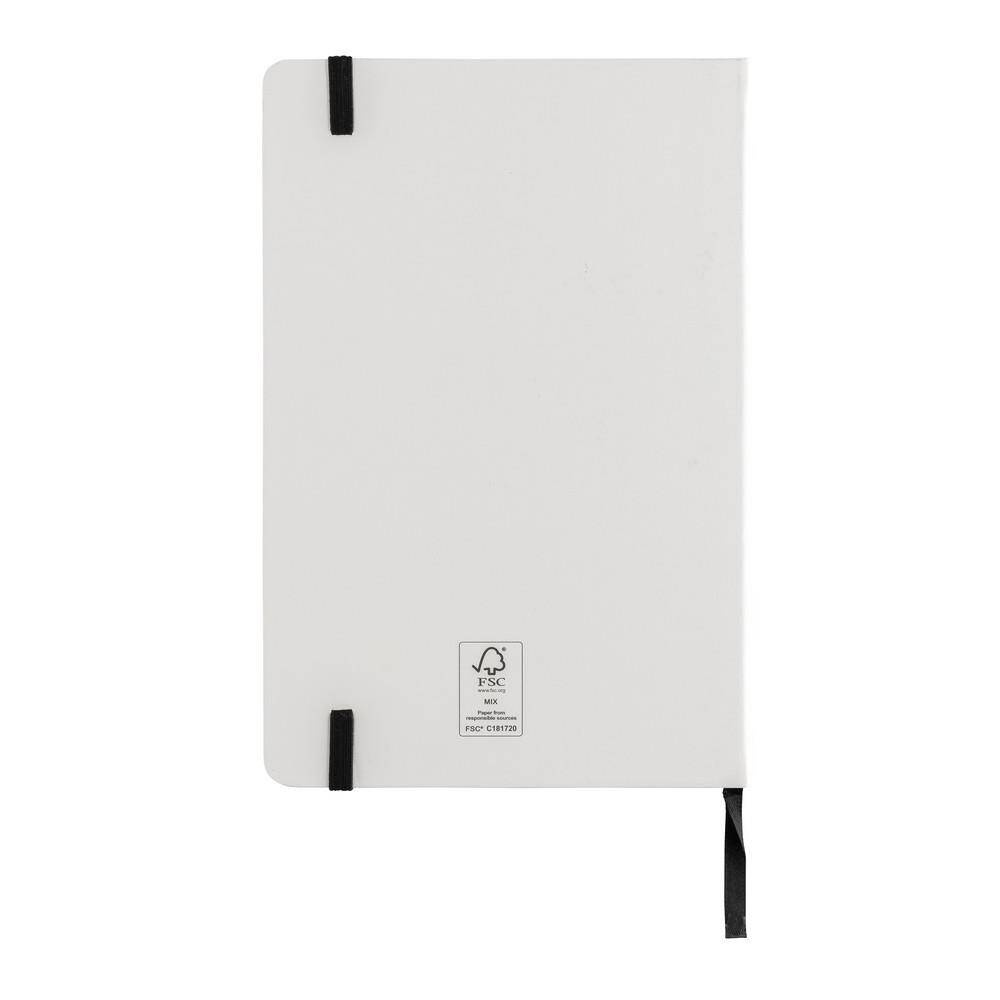 Notatnik A5 (80 białych kartek w linie o gramaturze 120 g/m2), okładka wykonana z papieru kraftowego z certyfikatem FSC®, tasiemka zakładkowa, strony z papieru kamiennego, w opakowaniu z papieru kraftowego z certyfikatem FSC® mix