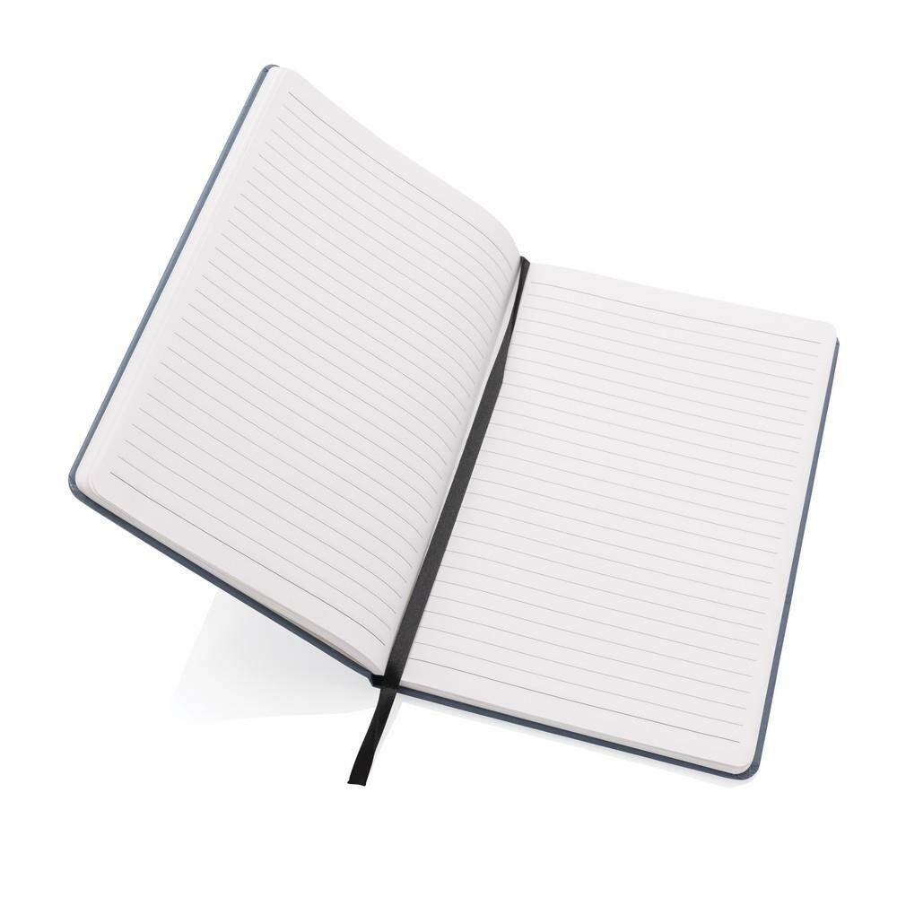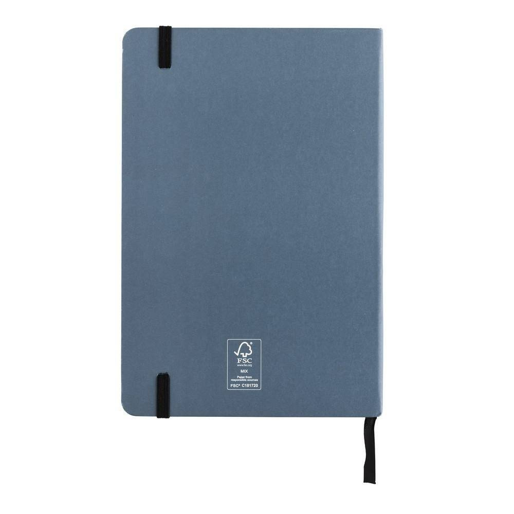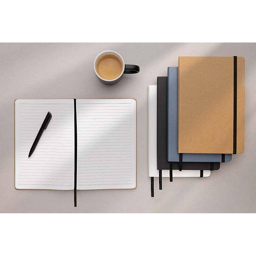 Notatnik A5 (80 białych kartek w linie o gramaturze 120 g/m2), okładka wykonana z papieru kraftowego z certyfikatem FSC®, tasiemka zakładkowa, strony z papieru