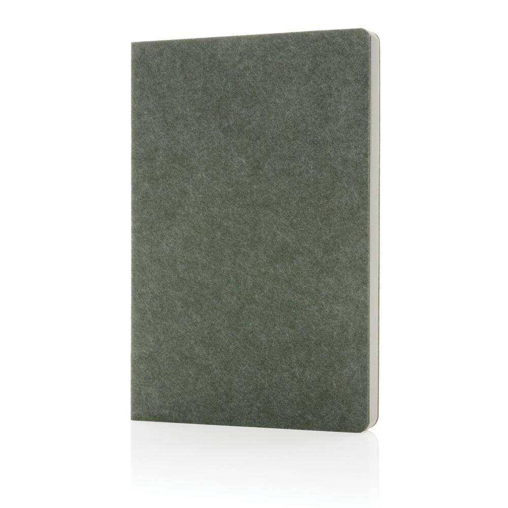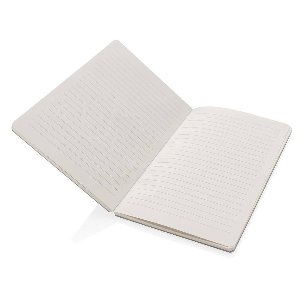 Notatnik (96 białych kartek 80 g/m2 w linie), wykonany z materiałów pochodzących z recyklingu z certyfikatem GRS, całkowita zawartość materiałów z recyklingu obliczona na podstawie wagi całkowitej przedmiotu: 99%