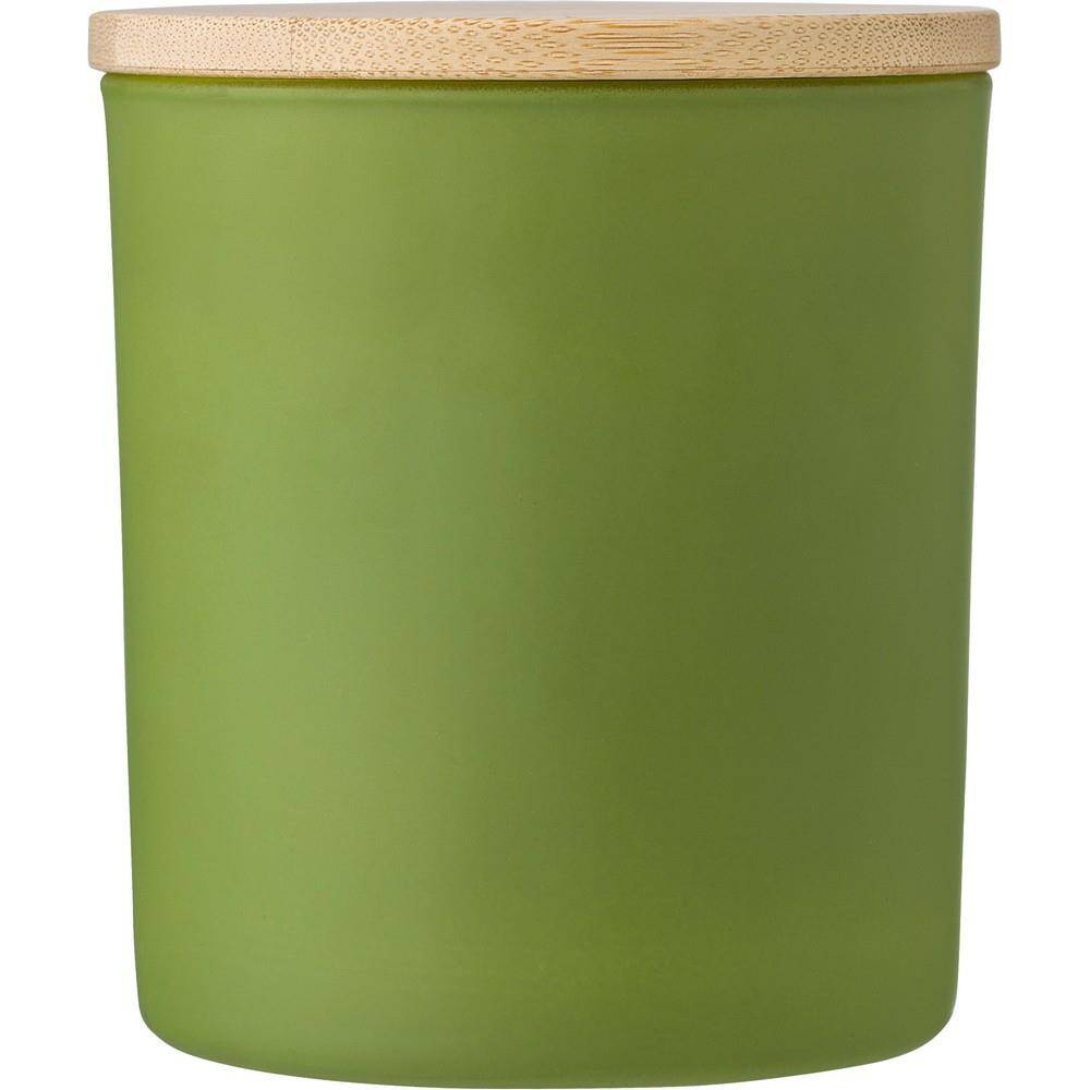 Świeczka zapachowa (02-wanilia, 03-drzewo sandałowe, 05-cynamon, 06-jaśmin), w szklanym słoiczku z bambusowym wieczkiem, zawiera głównie wosk roślinny (wosk
