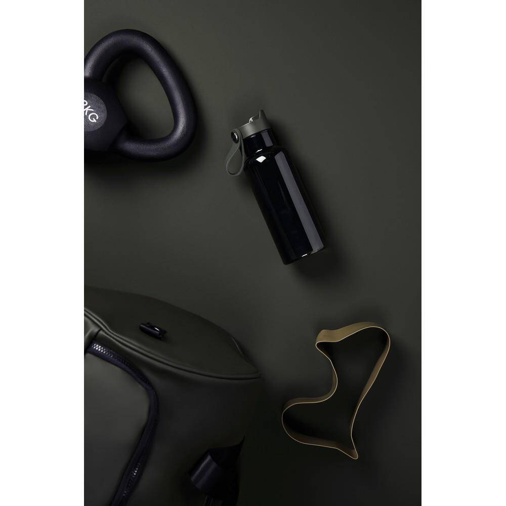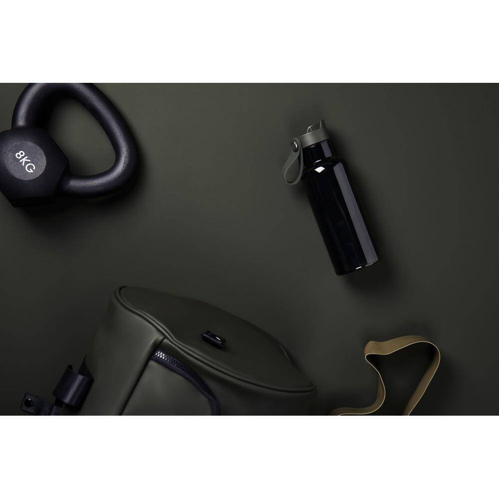 Butelka sportowa 600 ml, wykonana z RPET, całkowita zawartość materiałów z recyklingu obliczona na podstawie wagi całkowitej przedmiotu: 63%, nadaje się wyłącznie do zimnych napojów, zalecane mycie ręczne, w pudełku z papieru kraftowego z certyfikatem FSC.