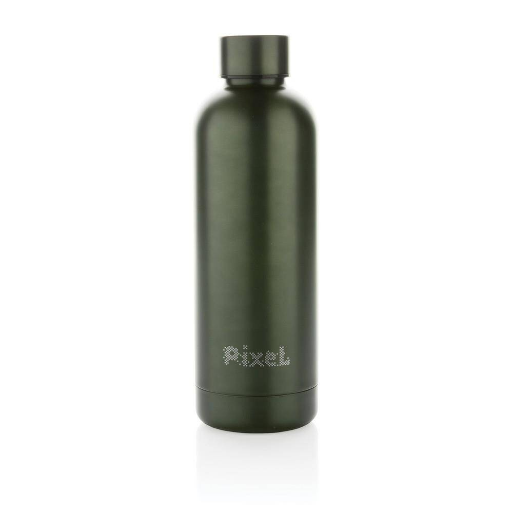 Butelka termiczna 500 ml, wykonana z materiałów pochodzących z recyklingu z certyfikatem RCS, całkowita zawartość materiałów z recyklingu obliczona na podstawie wagi całkowitej przedmiotu: 80%, podwójne ścianki z próżnią pomiędzy, utrzymuje temperaturę napojów ciepłych do 5 godzin oraz zimnych do 15 godzin, minimalistyczne wykończenie, w opakowaniu z papieru kraftowego, klasa termiczna: A