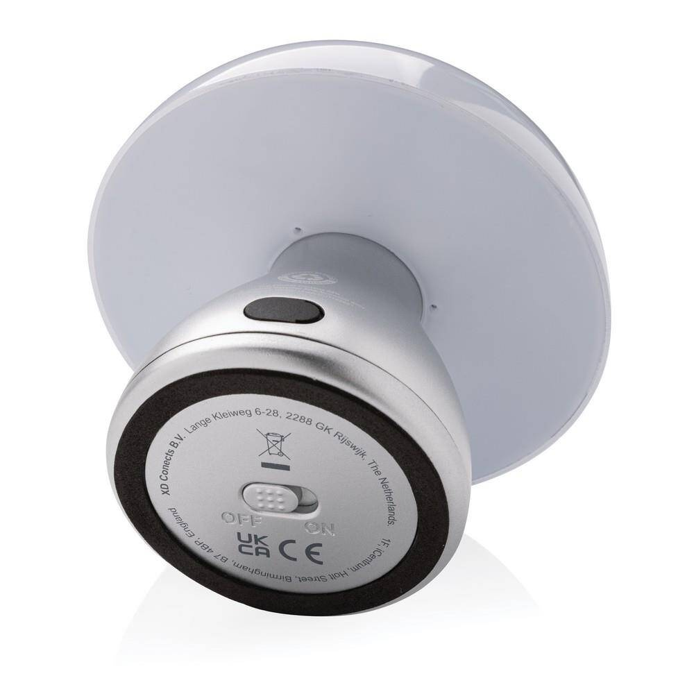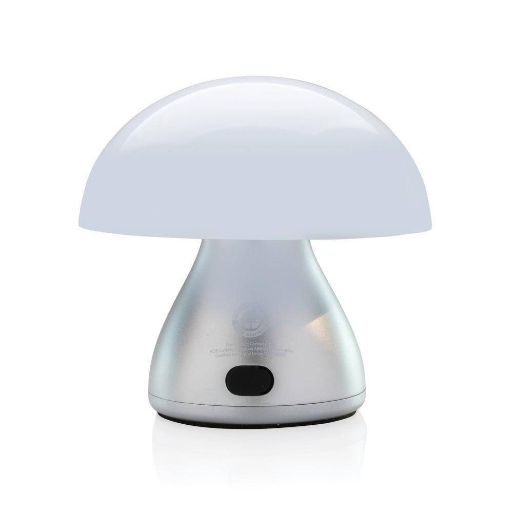 Lampka na biurko, 2 tryby świecenia, przycisk dotykowy w podstawie, wbudowany akumulator pozwala na świecenie do 5 godzin na jednym ładowaniu, ponowne ładowanie w 2 godziny, wejście USB typu C do ładowania, wykonana z ABS i aluminium z recyklingu z certyfikatem RCS, całkowita zawartość materiałów z recyklingu obliczona w oparciu o wagę całkowitą przedmiotu: 42%, w pudełku z papieru kraftowego z certyfikatem FSC® mix