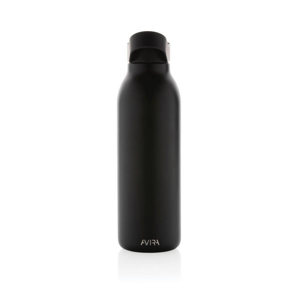 Butelka termiczna 500 ml, wykonana ze stali nierdzewnej pochodzącej z recyklingu, całkowita zawartość materiałów z recyklingu obliczona na podstawie wagi całkowitej przedmiotu: 96%, podwójne ścianki z próżnią pomiędzy, utrzymuje temperaturę napojów zimnych do 20 godzin, pasuje do większości uchwytów samochodowych, w pudełku z papieru kraftowego z certyfikatem FSC®, pudełko można wykorzystać jako stojak na telefon lub doniczkę, w pudełku z papieru kraftowego z certyfikatem FSC®