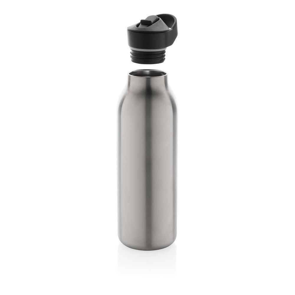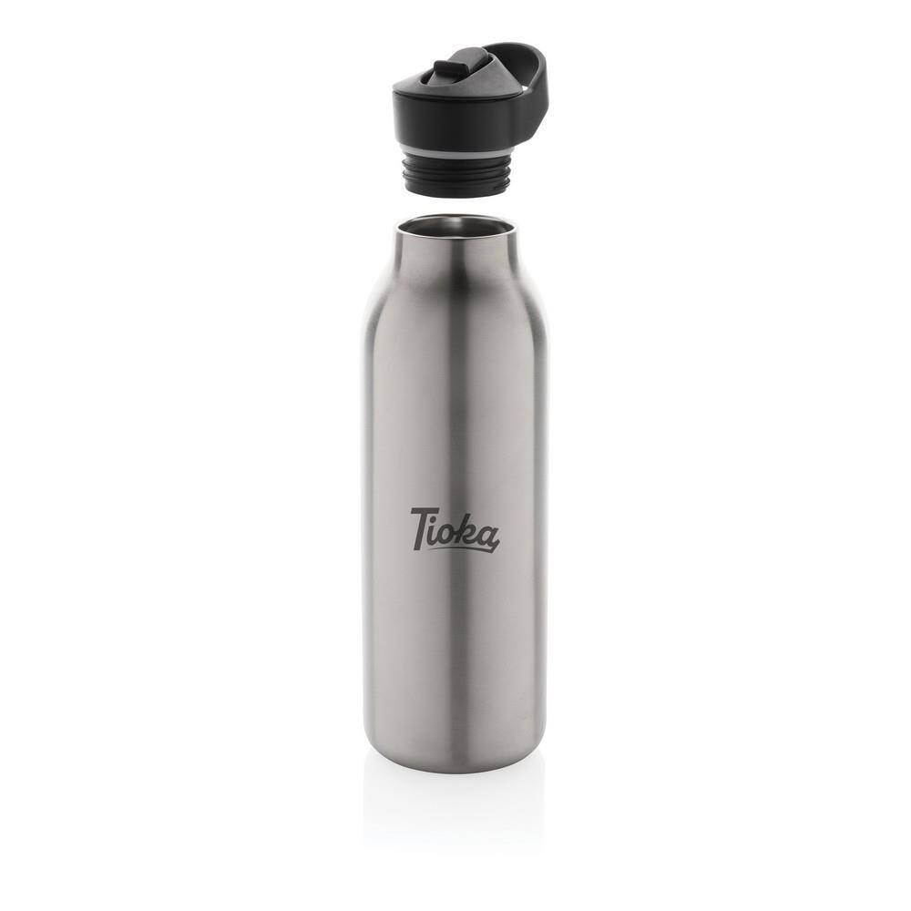 Butelka termiczna 500 ml, wykonana ze stali nierdzewnej pochodzącej z recyklingu, całkowita zawartość materiałów z recyklingu obliczona na podstawie wagi całkowitej przedmiotu: 96%, podwójne ścianki z próżnią pomiędzy, utrzymuje temperaturę napojów zimnych do 20 godzin, pasuje do większości uchwytów samochodowych, w pudełku z papieru kraftowego z certyfikatem FSC®, pudełko można wykorzystać jako stojak na telefon lub doniczkę, w pudełku z papieru kraftowego z certyfikatem FSC®
