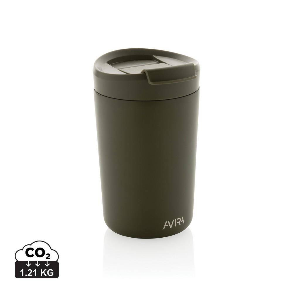 Kubek termiczny 300 ml, podwójne ścianki ze stali nierdzewnej z próżnią pomiędzy, wykonany ze stali nierdzewnej z recyklingu z certyfikatem RCS i z PP z recyklingu, całkowita zawartość materiałów z recyklingu obliczona na podstawie wagi całkowitej przedmiotu: 94%, w pudełku z papieru kraftowego z certyfikatem FSC®, pudełko można wykorzystać jako stojak na telefon lub doniczkę