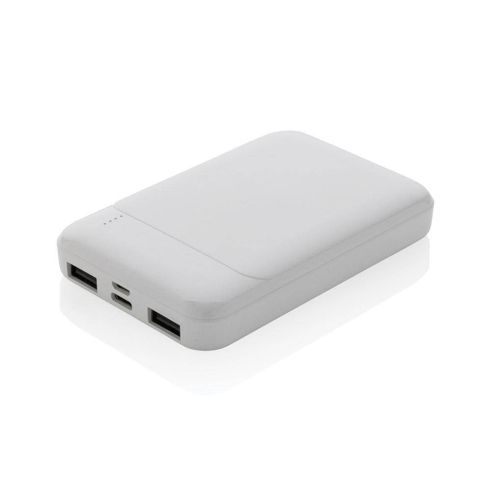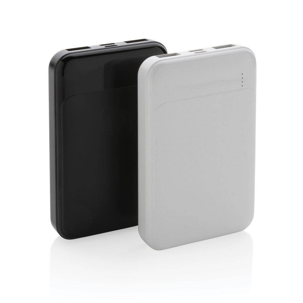 Power bank 5000 mAh, 4 diody wskazujące poziom naładowania, wykonany z ABS z recyklingu z certyfikatem RCS, całkowita zawartość materiałów z recyklingu obliczona na podstawie wagi całkowitej przedmiotu: 22%, wbudowany akumulator litowo polimerowy o dużej gęstości, wejście micro USB 5V/2A, wejście typu C 5V/2.4A, wyjście USB 5V/2.4A, wyjście typu C 5V/2A, w komplecie kabel z TPE z recyklingu z certyfikatem RCS, w pudełku z papieru kraftowego z certyfikatem FSC®