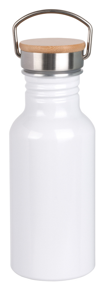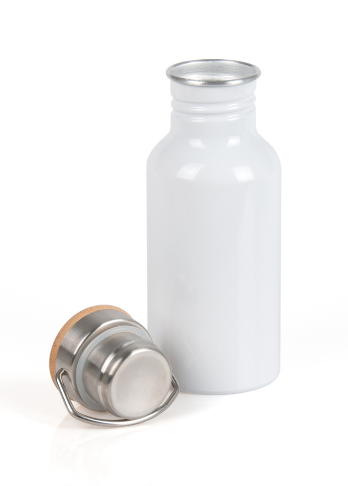 Aluminiowa butelka ECO TRANSIT z bambusową zakrętką i uchwytem do przenoszenia.