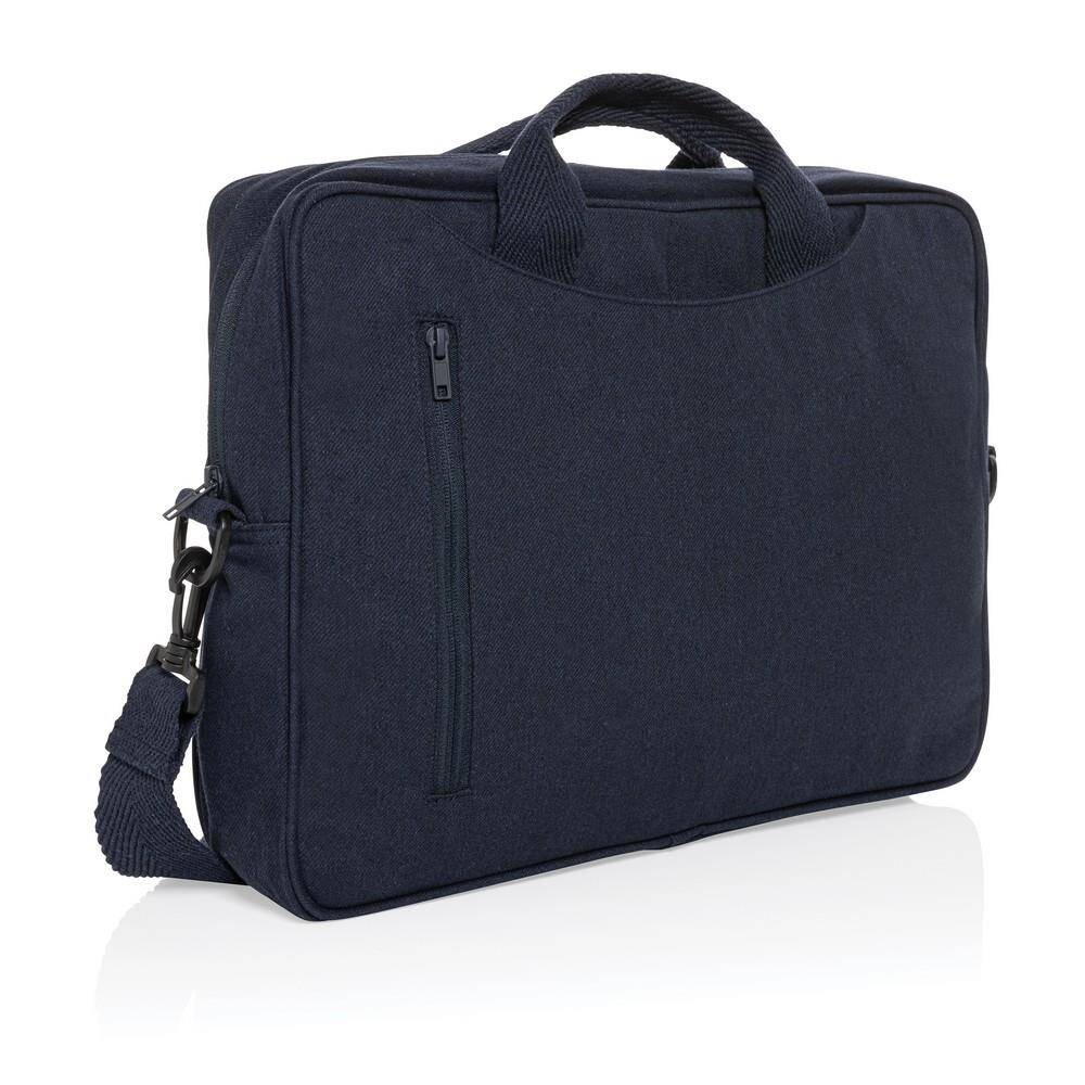 Torba na laptopa 15.4”, przegroda główna zamykana na rzep, kiszenie na akcesoria z przodu, wykonana z bawełny z recyklingu o gramaturze 340 g/m2, posiada znacznik