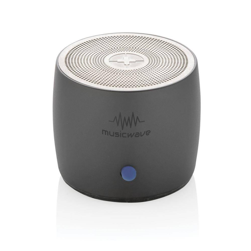 Głośnik bezprzewodowy 3W, BT 5.0, wykonany z aluminium z recyklingiem z certyfikatem RCS oraz ABS z recyklingu, całkowita zawartość materiałów z recyklingu obliczona na podstawie wagi całkowitej przedmiotu: 26%, wbudowany akumulator o pojemności 500 mAh pozwala na odtwarzanie muzyki do 4 godzin, ponowne ładowanie w 2 godziny, kabel USB typu C z TPE z recyklingu w komplecie, w pudełku z papieru kraftowego z certyfikatem FSC®