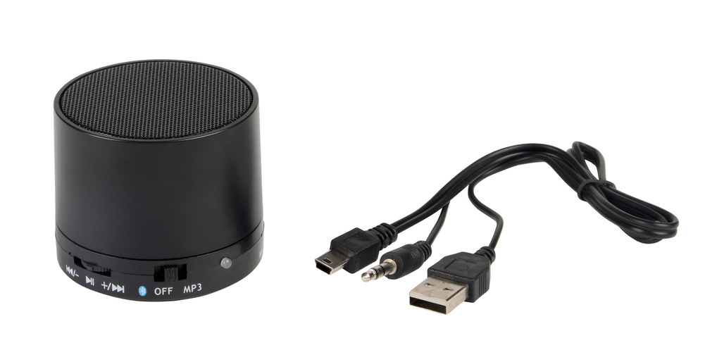 Posiada wyjście muzyczne 3W, slot na kartę micro SD, zawiera kabel ładujący (z USB na Mini-USB i złącze liniowe 3,5 mm), odtwarza MP3, z funkcją głośnomówiącą, funkcją radia FM, wbudowanym akumulatorem o pojemności ok. 450 mAh, czas pracy ok. 5 godzin, czas ładowania ok. 2 godzin, zasięg ok. 10 m, wyposażony w antypoślizgową podstawę.