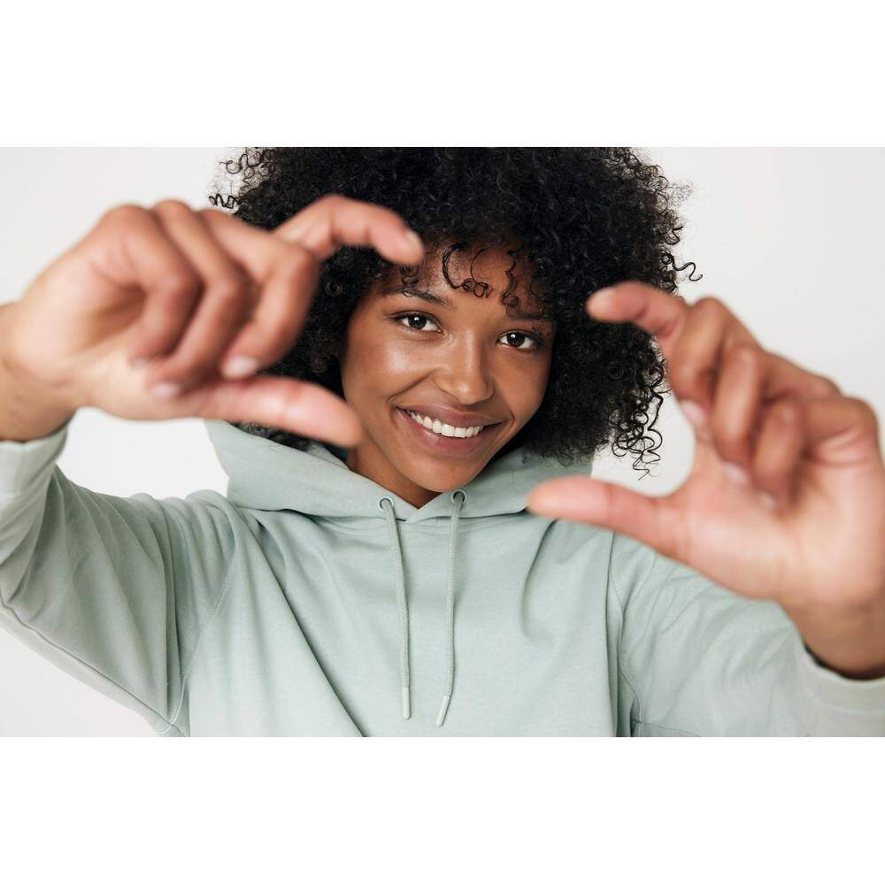Bluza z kapturem, unisex, regularny krój, splot Brushed Sweat, długie rękawy, dwuwarstwowy kaptur, wykonana w 50% z bawełny z recyklingu i w 50% z bawełny organicznej o gramaturze 340 g/m2, bez dodatku poliestru, posiada wbudowany znacznik AWARE™, który potwierdza wykorzystanie materiałów z recyklingu, posiada kod QR na metce, który prowadzi do cyfrowego paszportu produktu, 2% wpływów z każdego sprzedanego produktu z kolekcji Impact jest przekazywane na rzecz Water.org