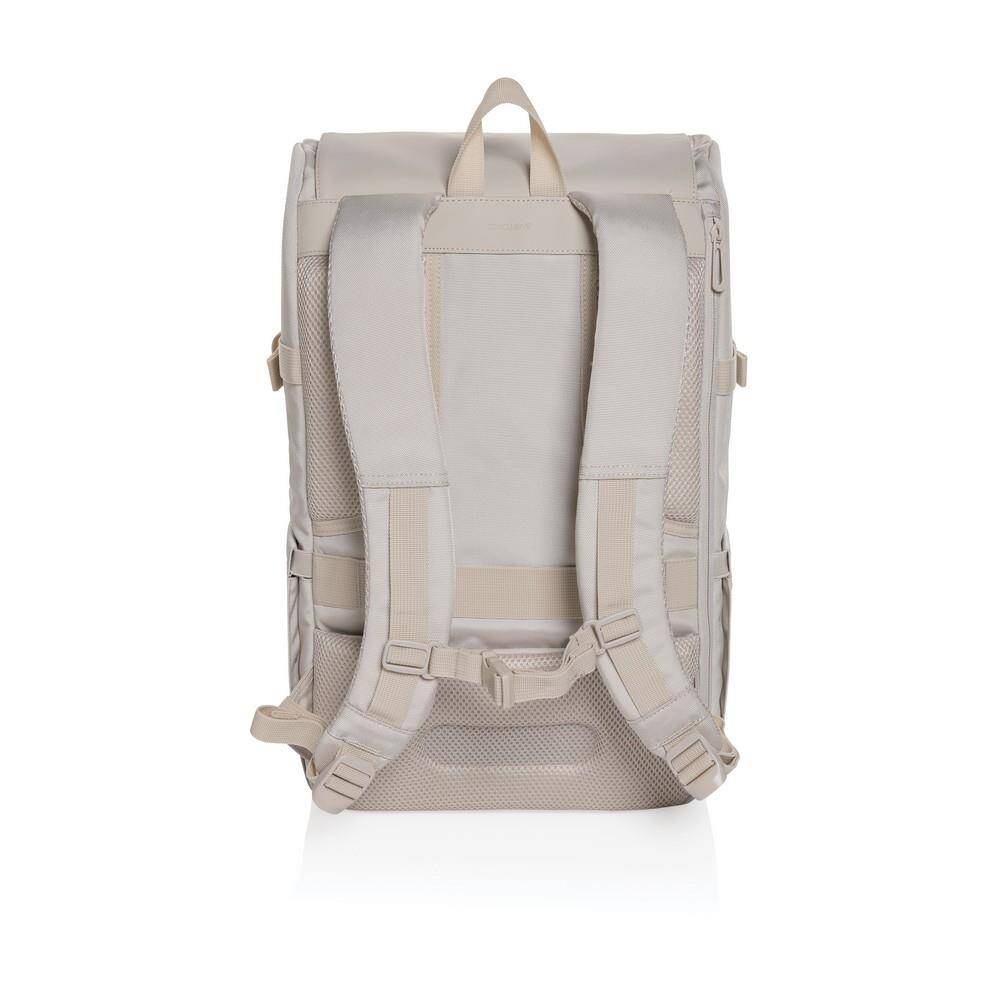Plecak na laptopa 15.6”, kieszenie wewnątrz i na zewnątrz, wykonany z poliestru z recyklingu, posiada znacznik AWARE, który gwarantuje, że wykorzystane materiały