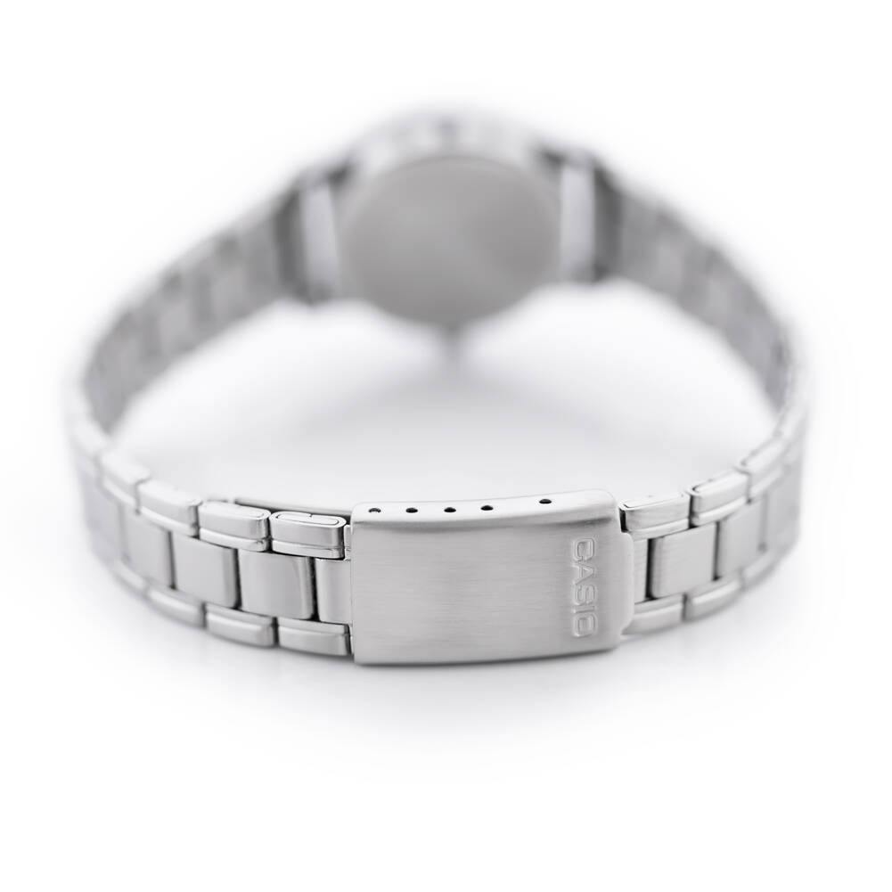 Zegarek damski Casio LTP-V006D-1B2 to wyjątkowy wyraz subtelności i elegancji dla nowoczesnych kobiet. Jego srebrna bransoleta i koperta doskonale komponują się, tworząc delikatny, a jednocześnie wyrazisty akcent.
