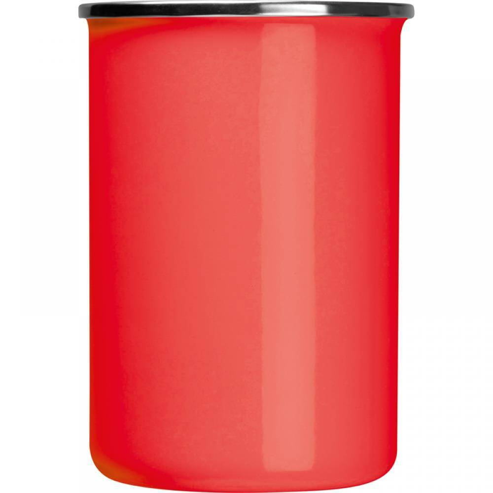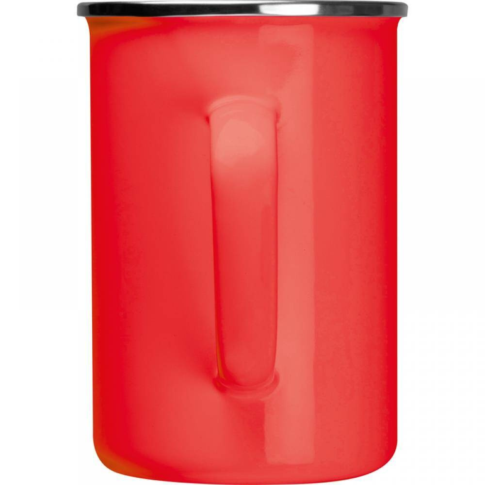 Nostalgiczny kubek metalowy, emaliowany, o pojemności 550 ml.
