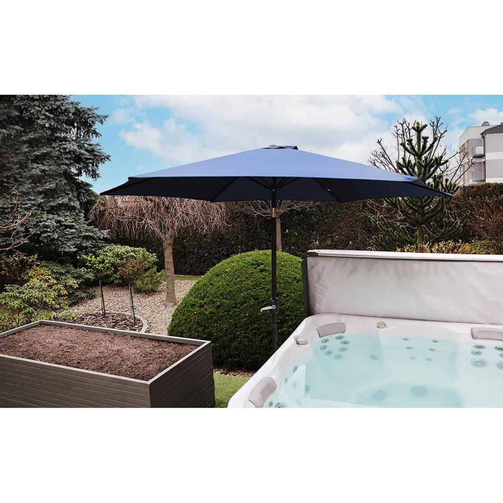 PARASOL OGRODOWY 300CM SKŁADANY GRANATOWY wykonany z wodoodpornego i odpornego na promieniowanie uv poliestru, zapewni dużą powierzchnię zacienienia i skutecznie ochroni Ciebie i Twoją rodzinę przed promieniami słonecznymi i deszczem. Jest wyjątkowo funkcjonalny i łatwy w obsłudze. Dzięki specjalnemu systemowi rozkładania czaszy w postaci korbki, w szybki i łatwy sposób złożysz lub rozłożysz parasol, a możliwość regulowania kąta nachylenia sprawi, że idealnie ustawisz go, by uzyskać wymarzony cień.