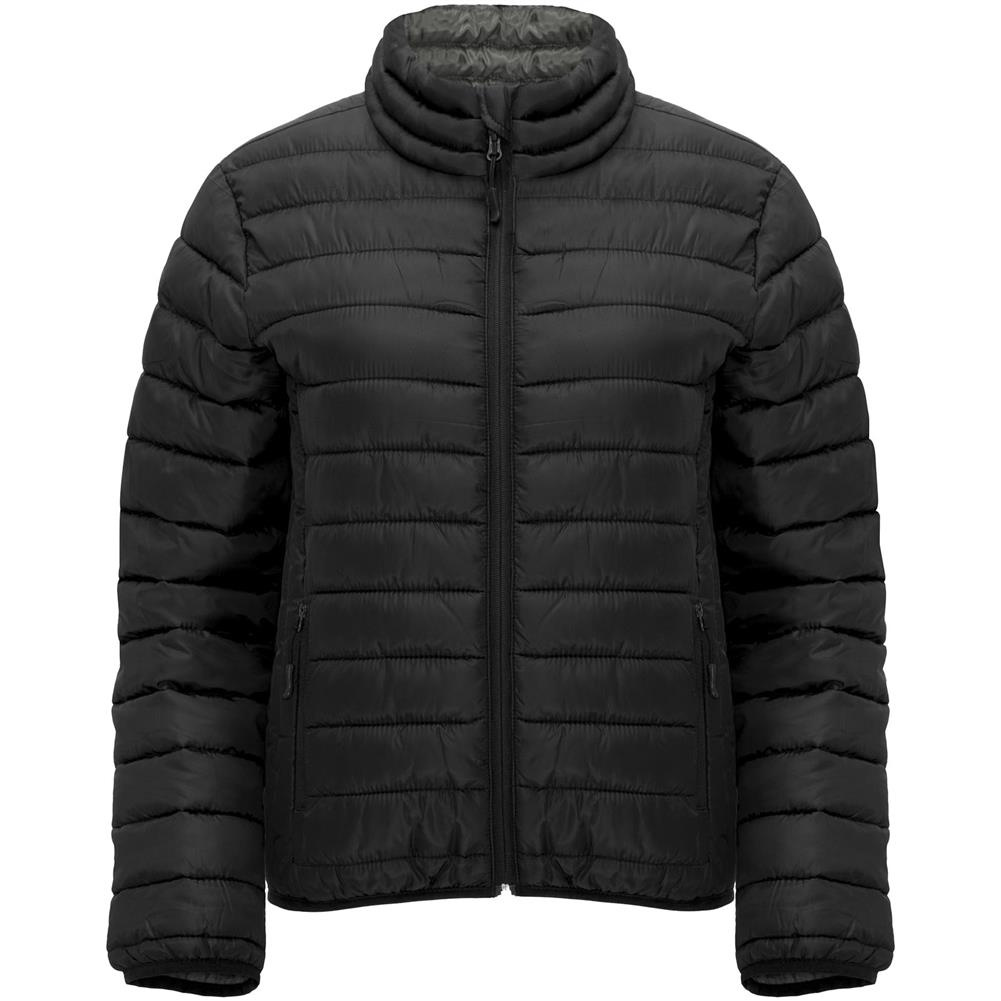 Damska kurtka pikowana z wypełnieniem przypominającym w dotyku pierze. Odwrócone zamki błyskawiczne z dopasowanym ochraniaczem podbródka i ściągaczem. Dwie przednie kieszenie z zamkami błyskawicznymi. Dopasowana elastyczna lamówka w kołnierzu, mankietach i u dołu. Kontrastowa podszewka wewnętrzna. W zestawie torba transportowa. Lekka i składana odzież. Dopasowany krój. Usuwalna metka. Wodoodporność. Wiatroszczelna.