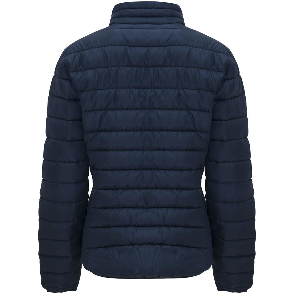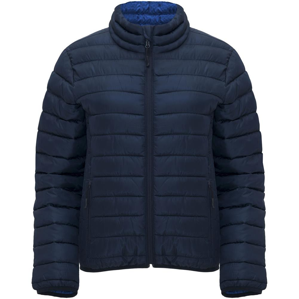 Damska kurtka pikowana z wypełnieniem przypominającym w dotyku pierze. Odwrócone zamki błyskawiczne z dopasowanym ochraniaczem podbródka i ściągaczem. Dwie przednie kieszenie z zamkami błyskawicznymi. Dopasowana elastyczna lamówka w kołnierzu, mankietach i u dołu. Kontrastowa podszewka wewnętrzna. W zestawie torba transportowa. Lekka i składana odzież. Dopasowany krój. Usuwalna metka. Wodoodporność. Wiatroszczelna.