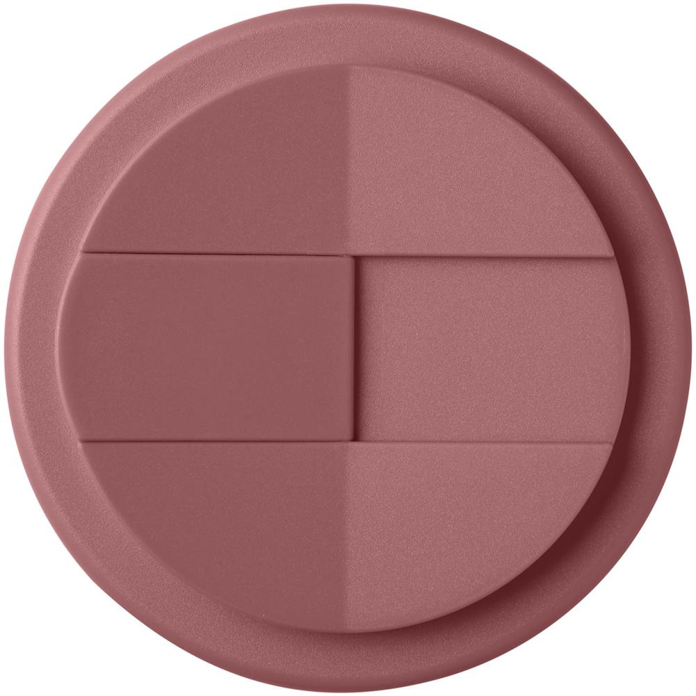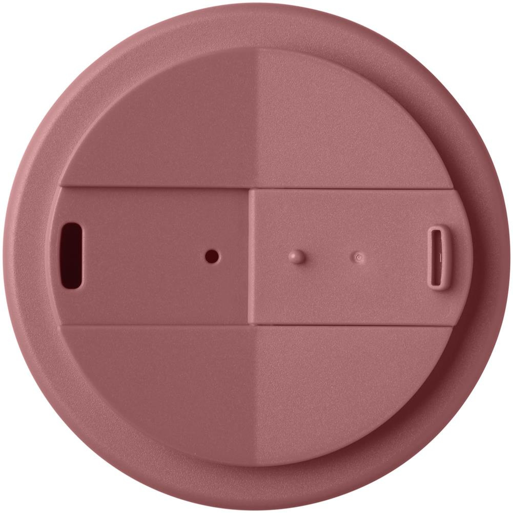 Izolowany kubek o podwójnych ściankach ze szczelnie zakręcaną pokrywką zapobiegającą rozlewaniu i pojemności 350 ml.
