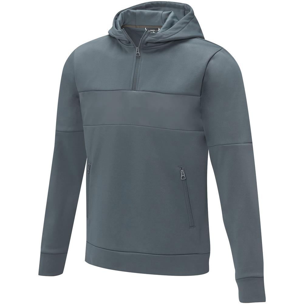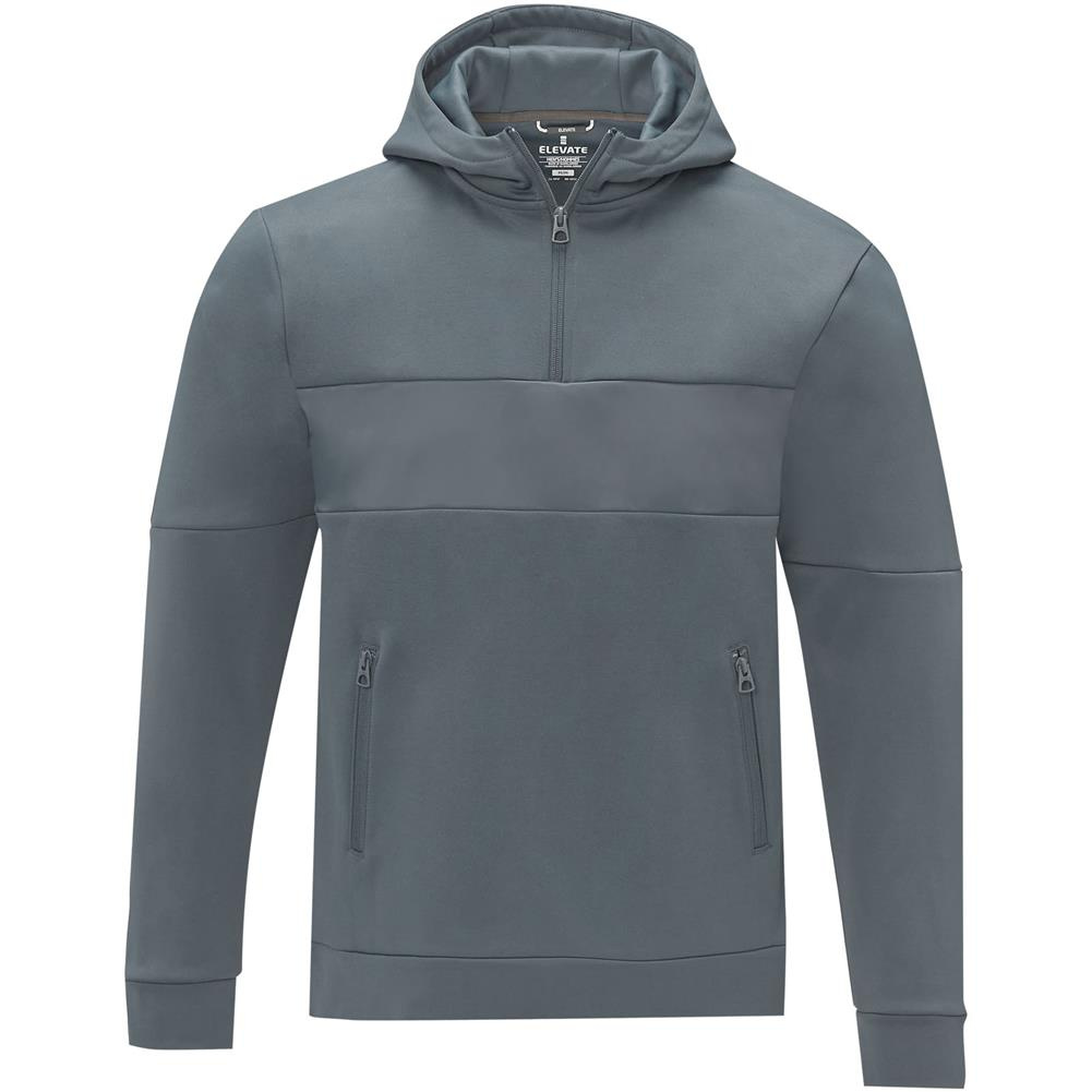 Męska bluza anorak z kapturem zapinana na zamek błyskawiczny Sayan to wyjątkowe połączenie wydajności i stylu. Konstrukcja anoraka płynnie łączy modę i funkcjonalność, z ćwierć zamkiem błyskawicznym dla wszechstronności w warstwach. Wykonany z mieszanki poliestru i dzianiny Sorona® o gramaturze 350 g/m². Włókno Sorona® zwiększa ekologiczność kurtki, wprowadzając element zrównoważonego rozwoju bez uszczerbku dla wydajności. Kontrastowa tkanina na przednim panelu, wykonana z nylonu ripstop 280T, dodaje projektowi trwałości i tekstury oraz jest idealnym miejscem do zaprezentowania Twojej marki. Niezależnie od tego, czy wyruszasz na przygodę na świeżym powietrzu, czy po prostu poruszasz się po codziennej rutynie, sweter z kapturem Sayan bez wysiłku łączy modę z funkcjonalnością.