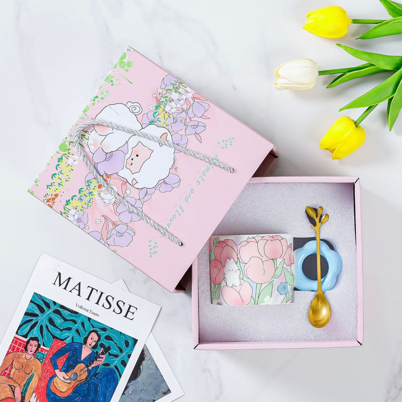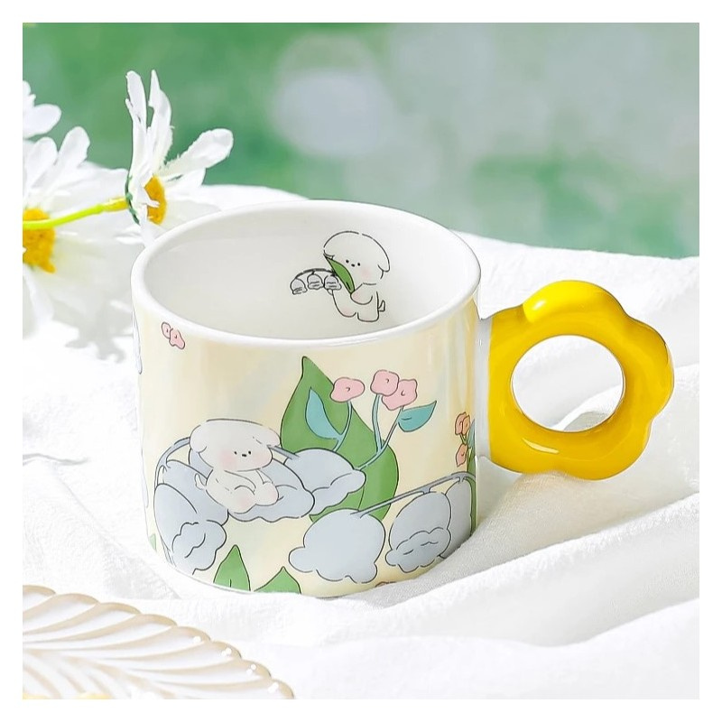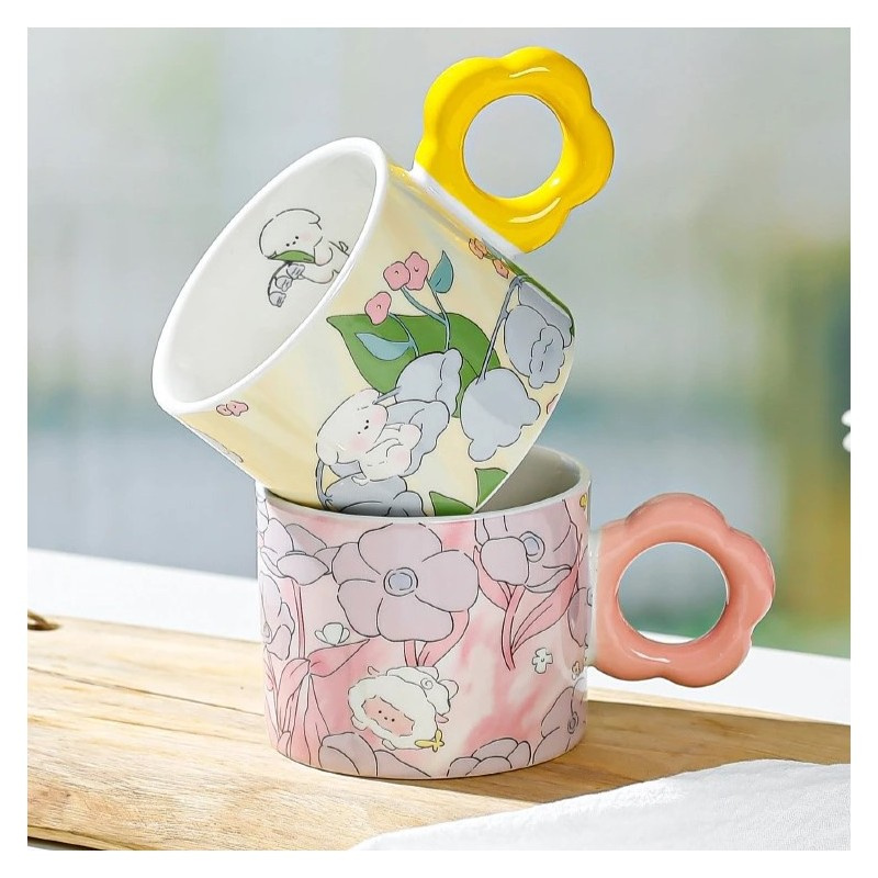Kubek ceramiczny z wiosennym, kwiatowym motywem