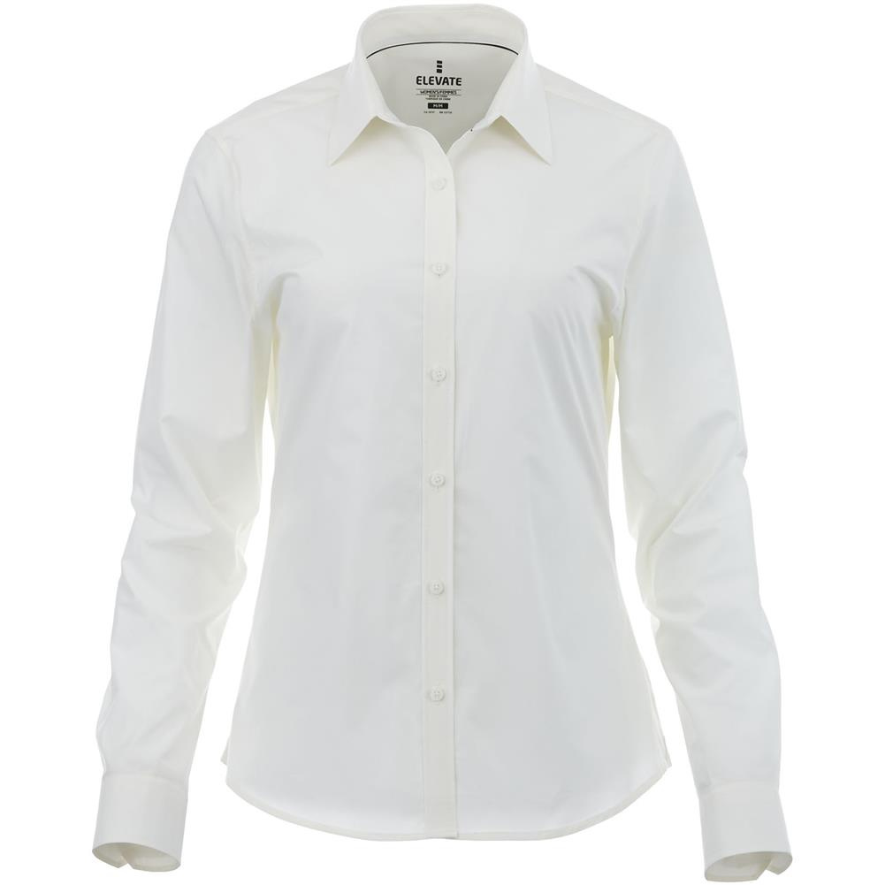 Damska elastyczna koszula z długim rękawem Hamell to idealne połączenie stylu i wygody. Ta tkana koszula wykonana jest z lekkiej tkaniny popelinowej z 97% bawełny i 3% elastanu. Tkanina popelinowa jest znana z ciasnego splotu, który zapewnia wyjątkową trwałość, zachowując jednocześnie miękką i gładką teksturę na skórze. Oznacza to, że koszulka Hamell jest nie tylko wygodna w noszeniu, ale także odporna na codzienne zużycie, zapewniając długotrwałe użytkowanie. Dodatkowa rozciągliwość zapewnia najwyższą swobodę ruchów, zapewniając optymalny komfort przez cały dzień. Ukryty kołnierzyk zapinany na guziki dodaje wyrafinowania, zachowując jednocześnie czysty wygląd. Koszula ma dopasowany krój zapewniający kobiecy wygląd.
