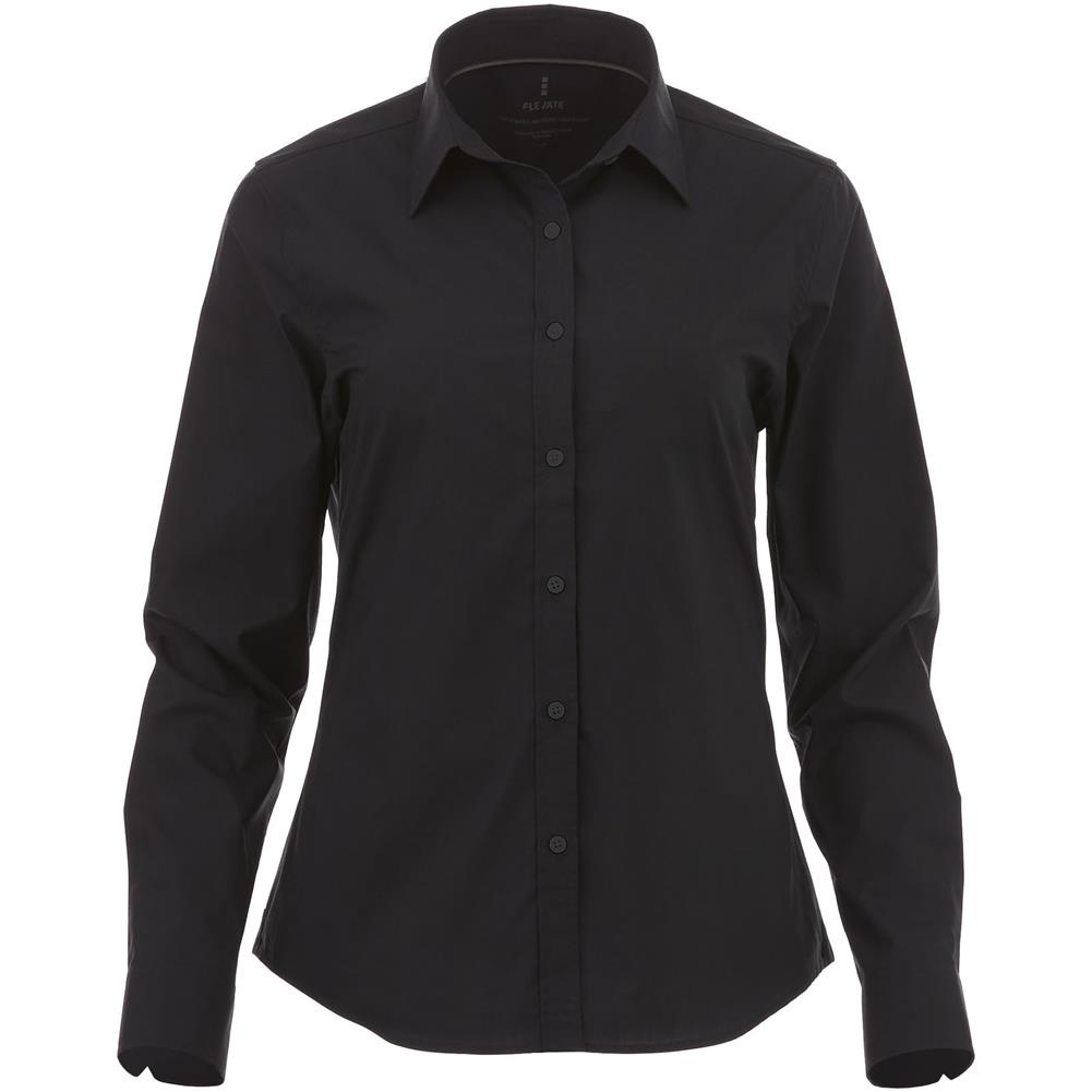 Damska elastyczna koszula z długim rękawem Hamell to idealne połączenie stylu i wygody. Ta tkana koszula wykonana jest z lekkiej tkaniny popelinowej z 97% bawełny i 3% elastanu. Tkanina popelinowa jest znana z ciasnego splotu, który zapewnia wyjątkową trwałość, zachowując jednocześnie miękką i gładką teksturę na skórze. Oznacza to, że koszulka Hamell jest nie tylko wygodna w noszeniu, ale także odporna na codzienne zużycie, zapewniając długotrwałe użytkowanie. Dodatkowa rozciągliwość zapewnia najwyższą swobodę ruchów, zapewniając optymalny komfort przez cały dzień. Ukryty kołnierzyk zapinany na guziki dodaje wyrafinowania, zachowując jednocześnie czysty wygląd. Koszula ma dopasowany krój zapewniający kobiecy wygląd.