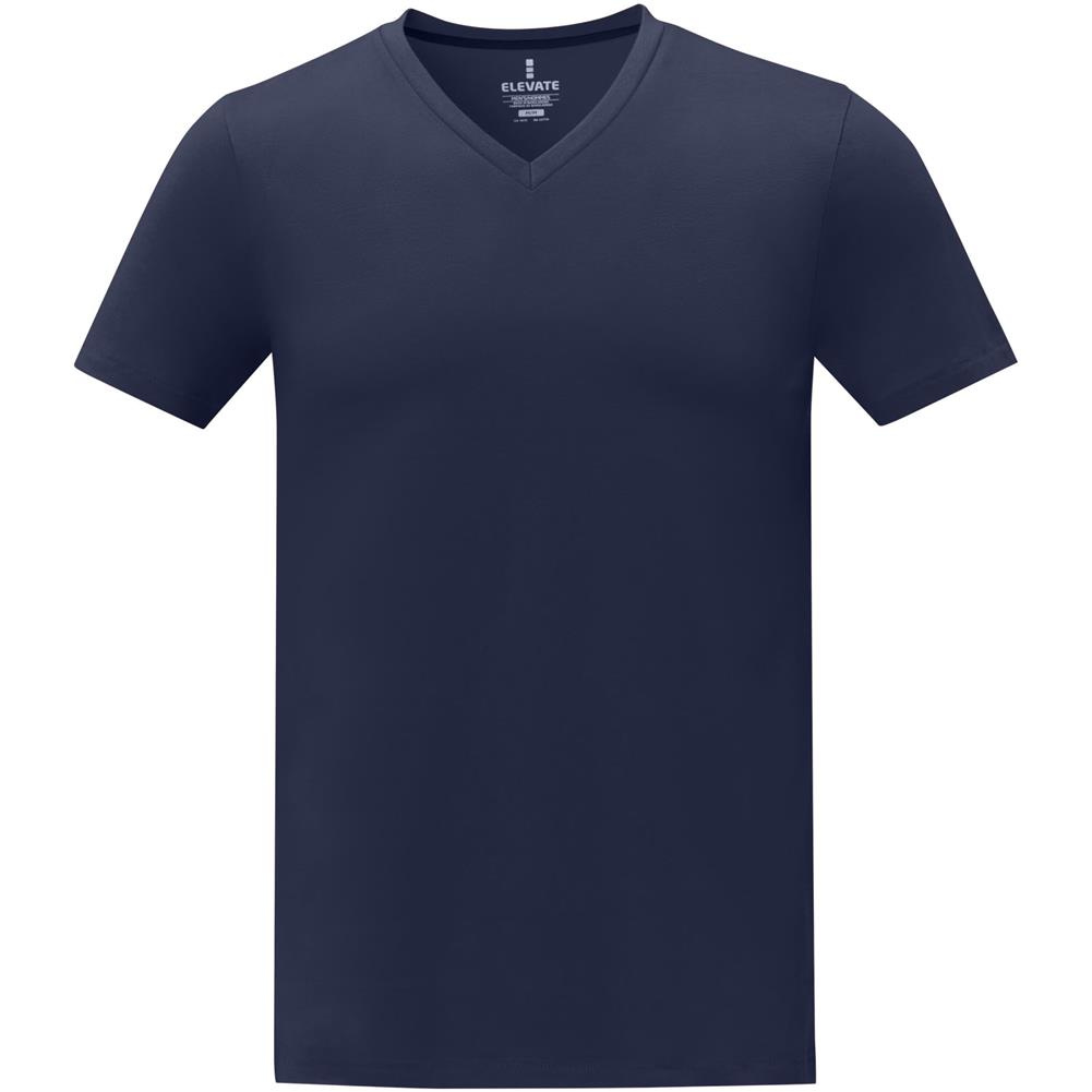 Męska koszulka z krótkim rękawem V-neck marki Somoto wykonana z bawełny o gramaturze 160 g/m2 jest idealna na każdą okazję i stanowi wygodny dodatek do każdej garderoby. Bawełna typu ringspun zapewnia mocniejszą i gładszą przędzę, dzięki czemu materiał jest bardziej wytrzymały i gwarantuje wysoką jakość. Dekolt w kształcie litery V dodaje stylu, a boczne szwy zapewniają doskonałe dopasowanie. Nadrukowany na karku znak firmowy Elevate zwiększa komfort noszenia, a wzmocnione ramiona zapewniają stałe dopasowanie nawet przy długotrwałym użytkowaniu.