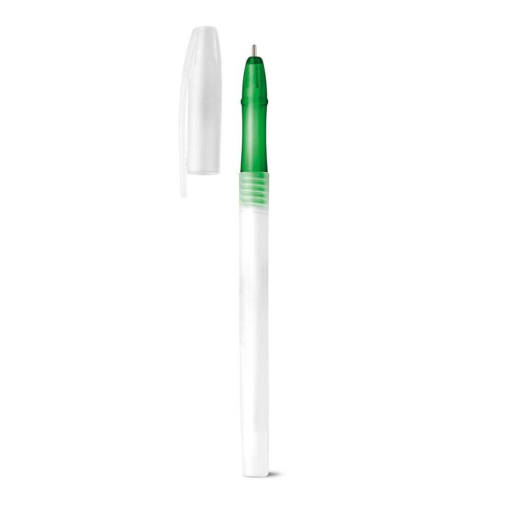 Długopis wykonany z PP, z kolorową końcówką i przezroczystą zatyczką.